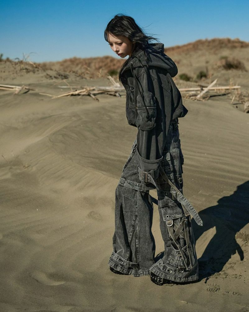 REFLEMからベルト付クロップカーゴレイヤードジップパーカーが登場。