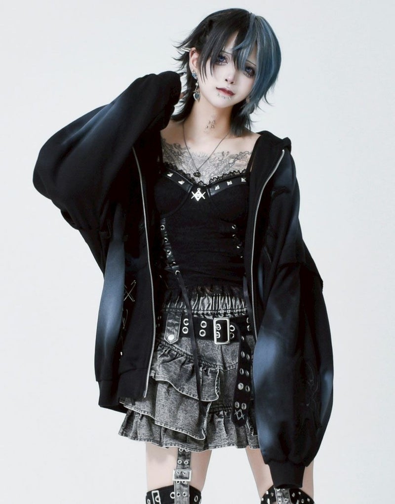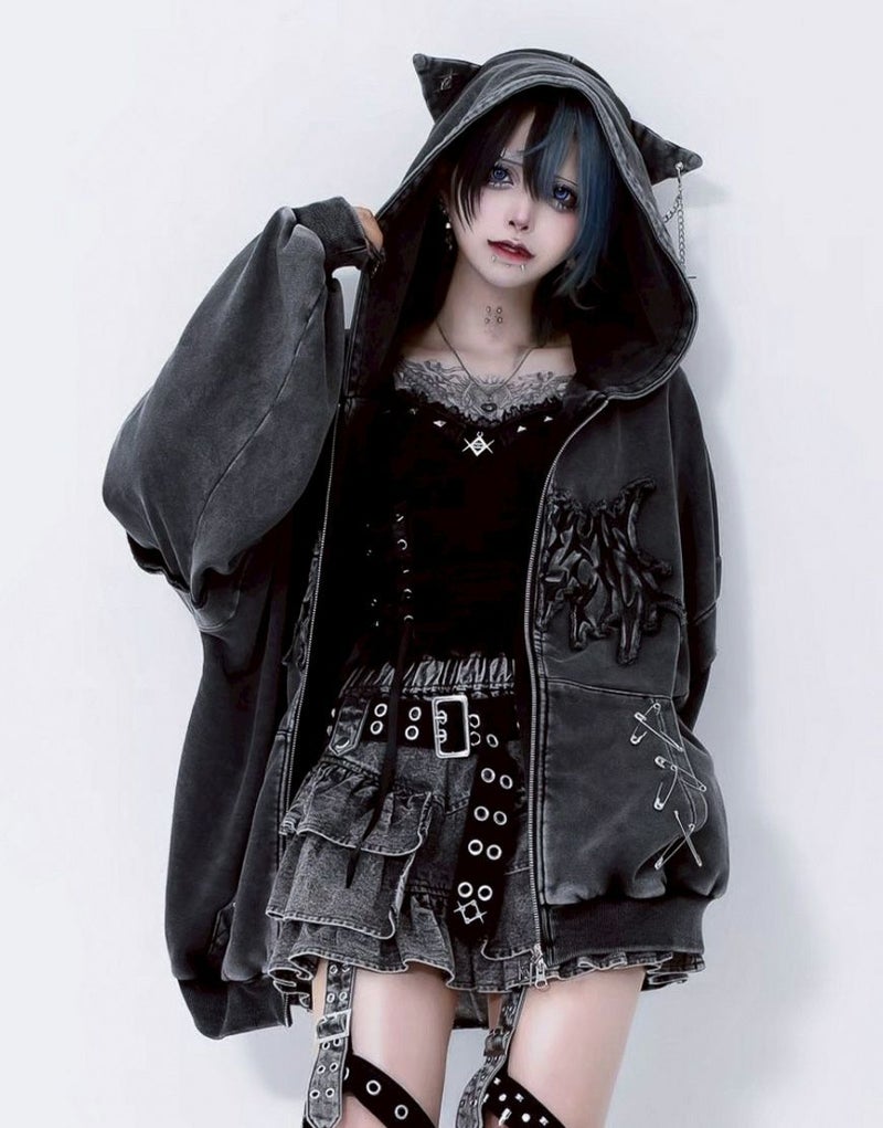 猫耳部分のチェーンパーツにはクロスチャームをセットし、病み感のある神秘的なニュアンスをプラス。