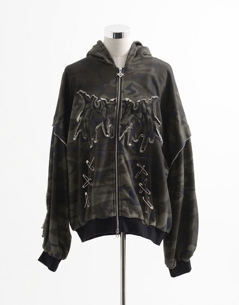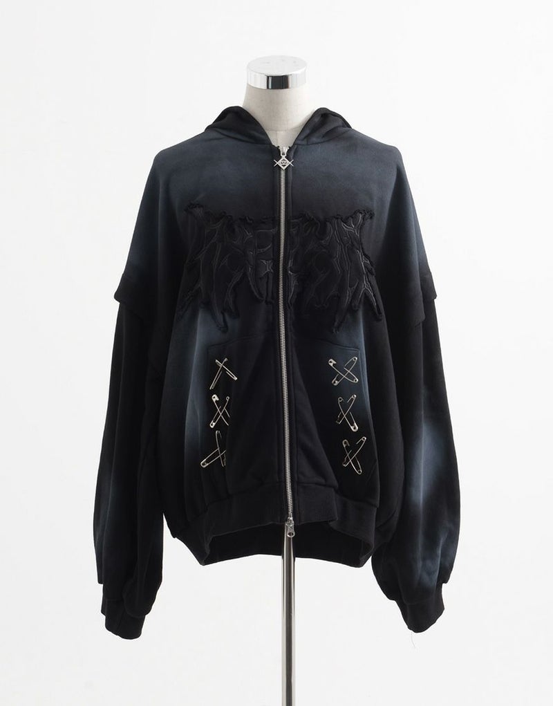 鋲・装飾・刺繍といったREFLEMらしいアイコニックな要素を詰め込んだ、圧倒的存在感のパーカー。