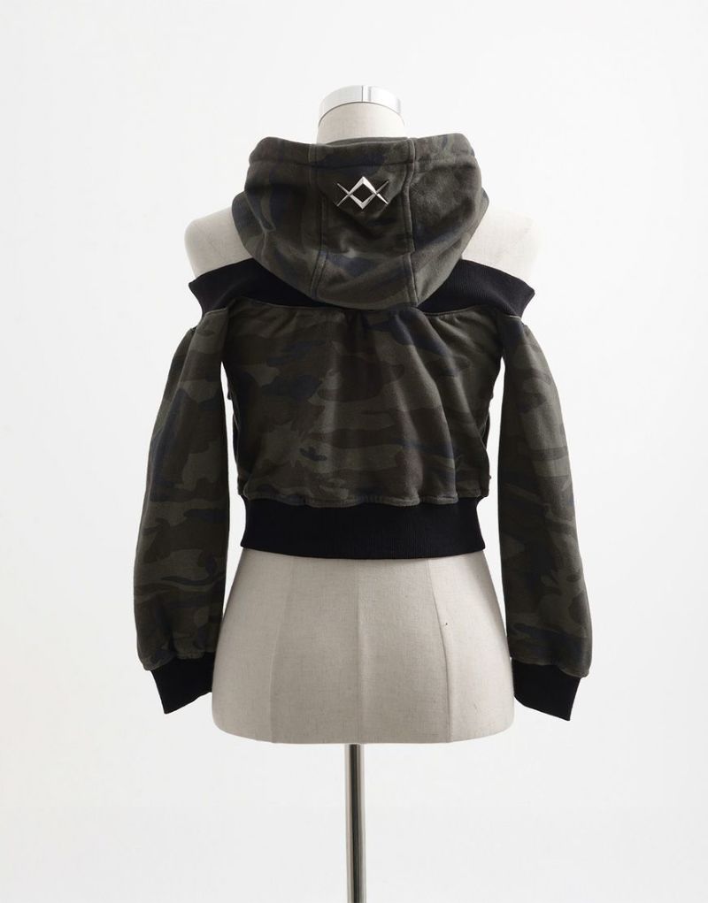 オフショル仕様で着用できるデザイン性の高いクロップド丈ジップパーカー。