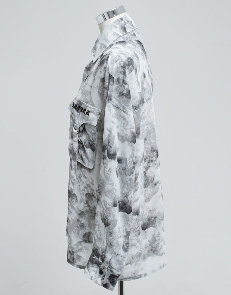 フロントには両胸に立体ポケット+ブランドロゴ刺繍を配置し、ストリートとモードの中間地点をゆるやかに漂うようなデザインに。