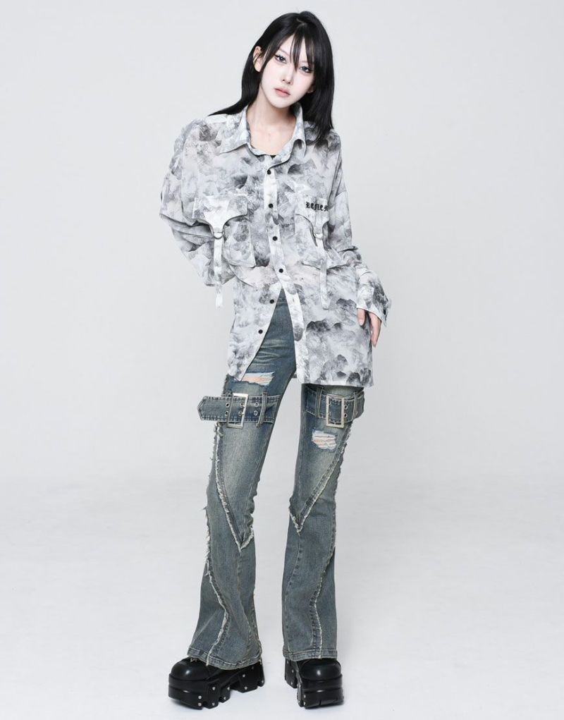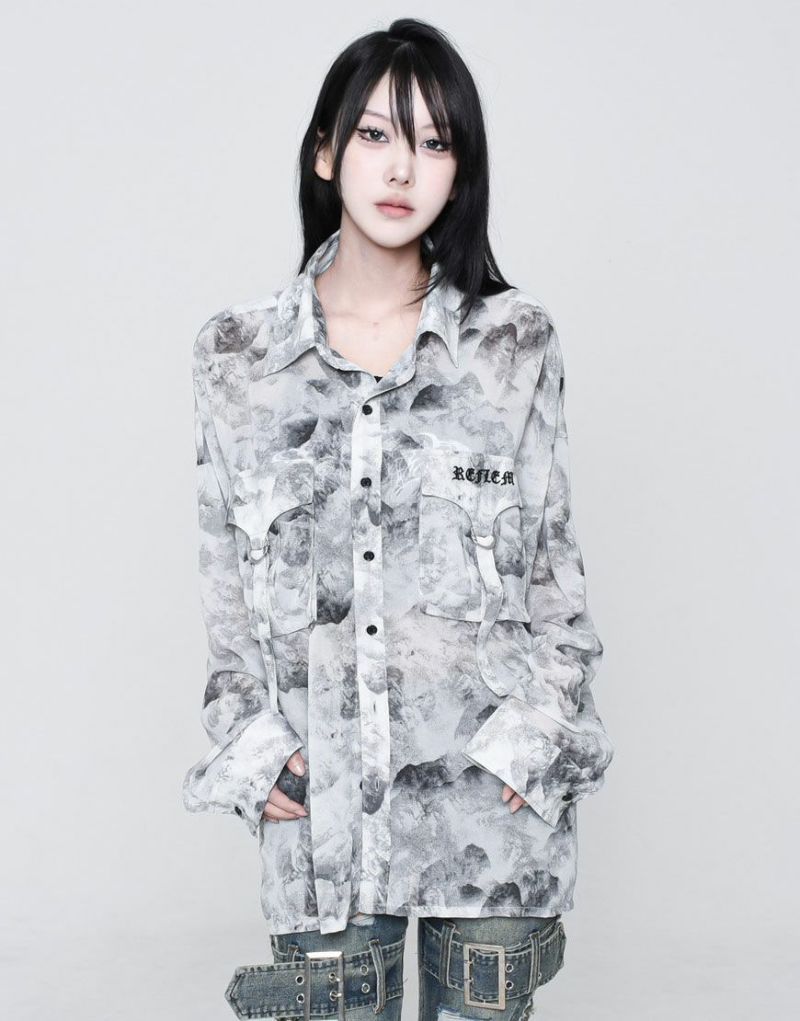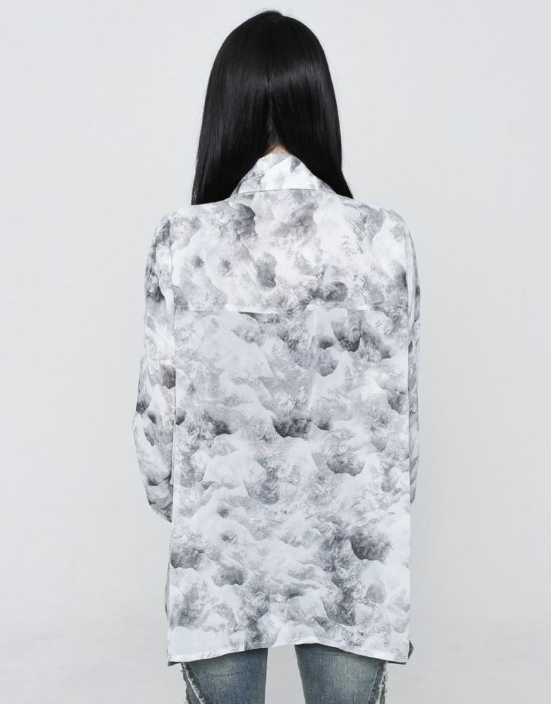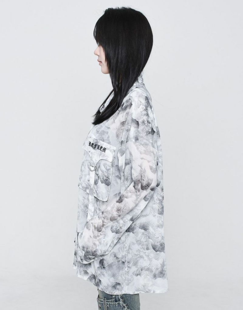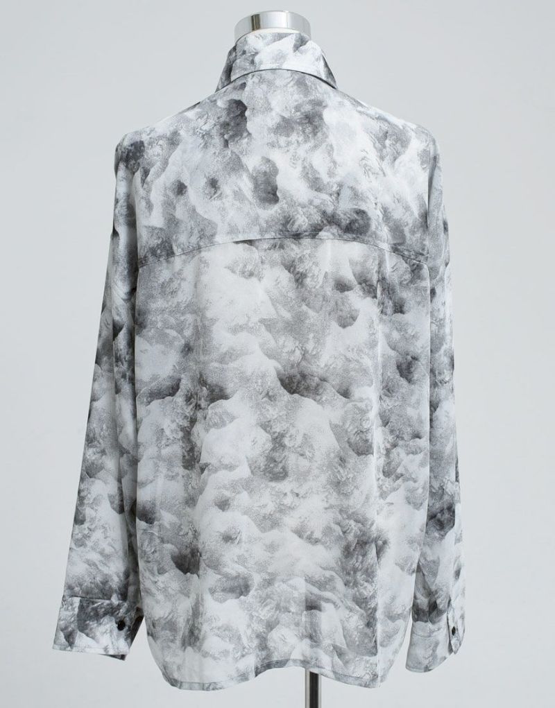 カラーは、無機質な透明感が際立つブラックのシアー生地と、独自の世界観を纏ったモノトーンのムラ染め柄(タイダイ)の2色展開。