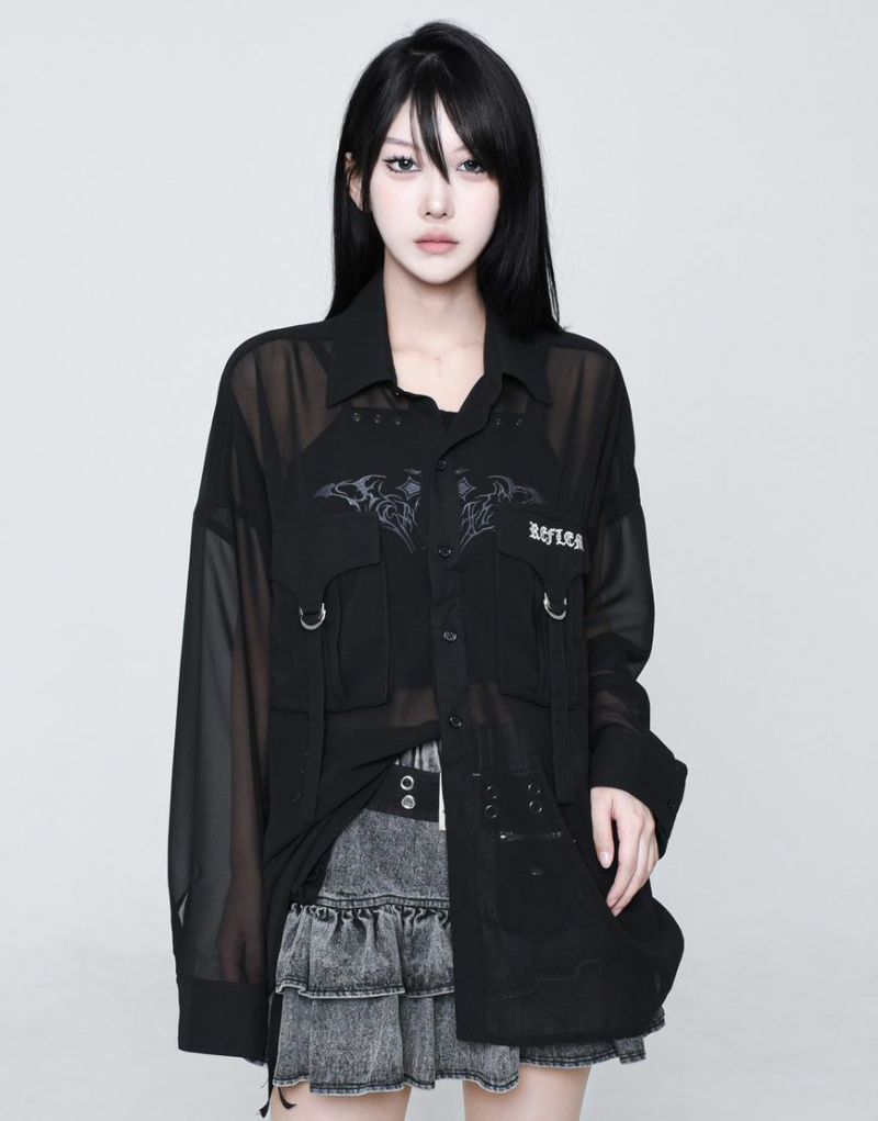 インナー次第で、“肌を魅せる”も“柄を魅せる”も自在に切り替えられる、自由度の高い1枚です。