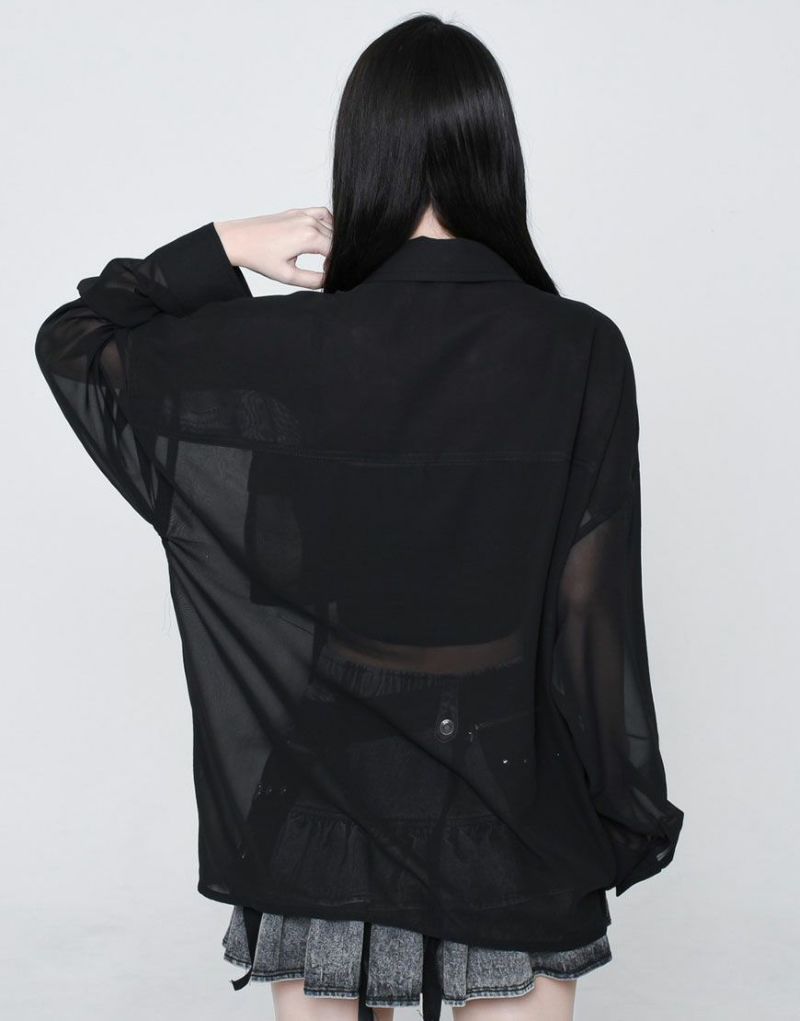 ドライタッチなシフォン素材が生み出す軽やかな透け感が、既視感のないレイヤードスタイルを可能にします。