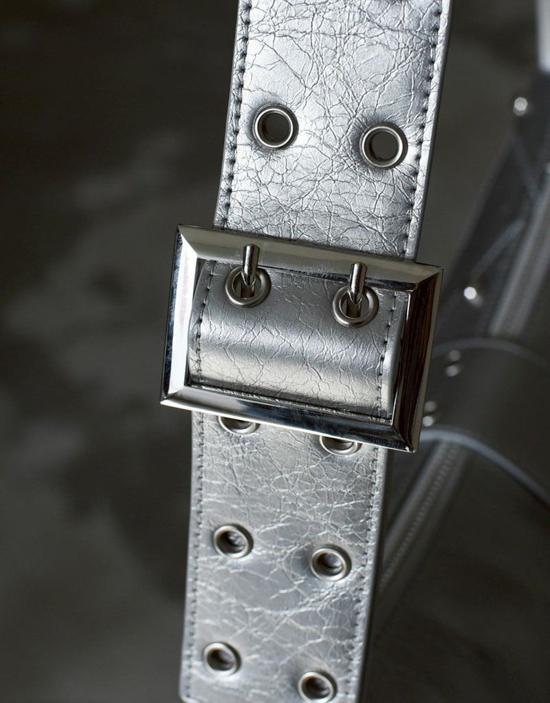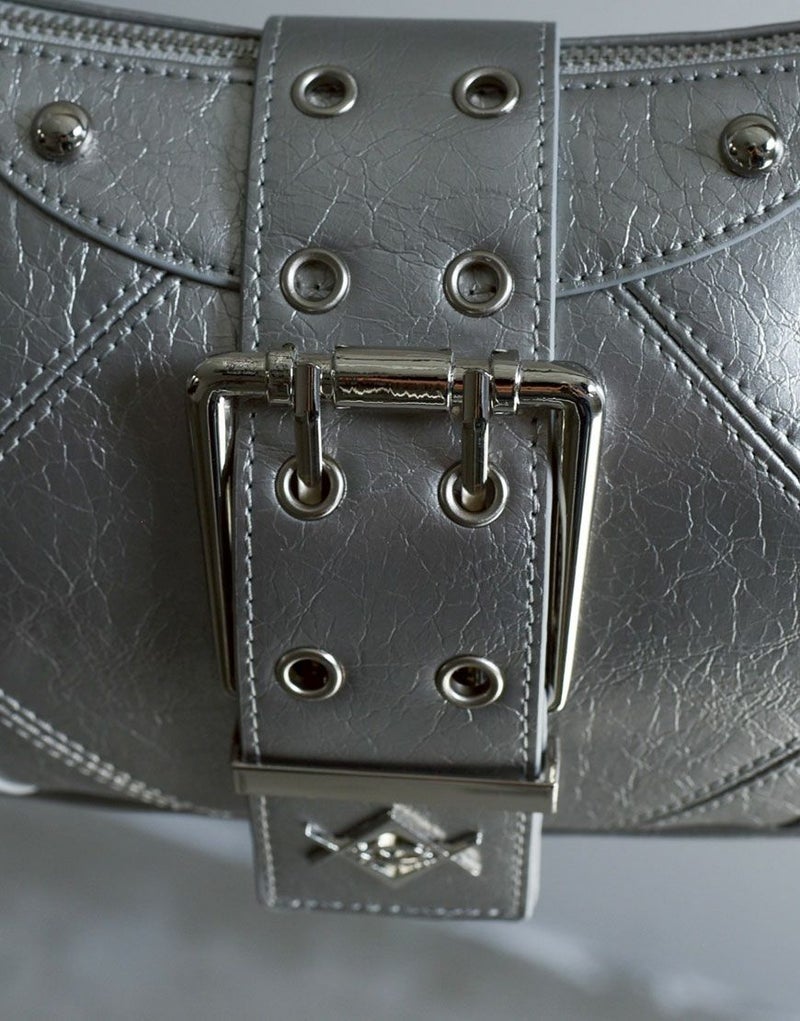 フロントにあしらわれた大きめのベルトバックルがデザインのアクセントに。