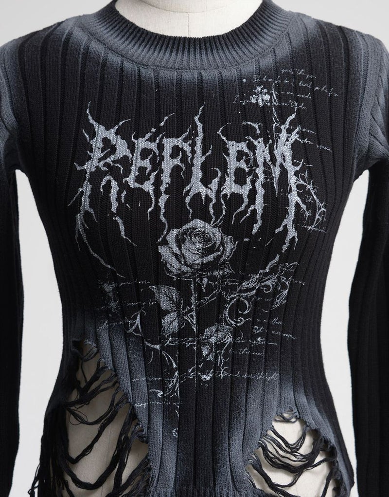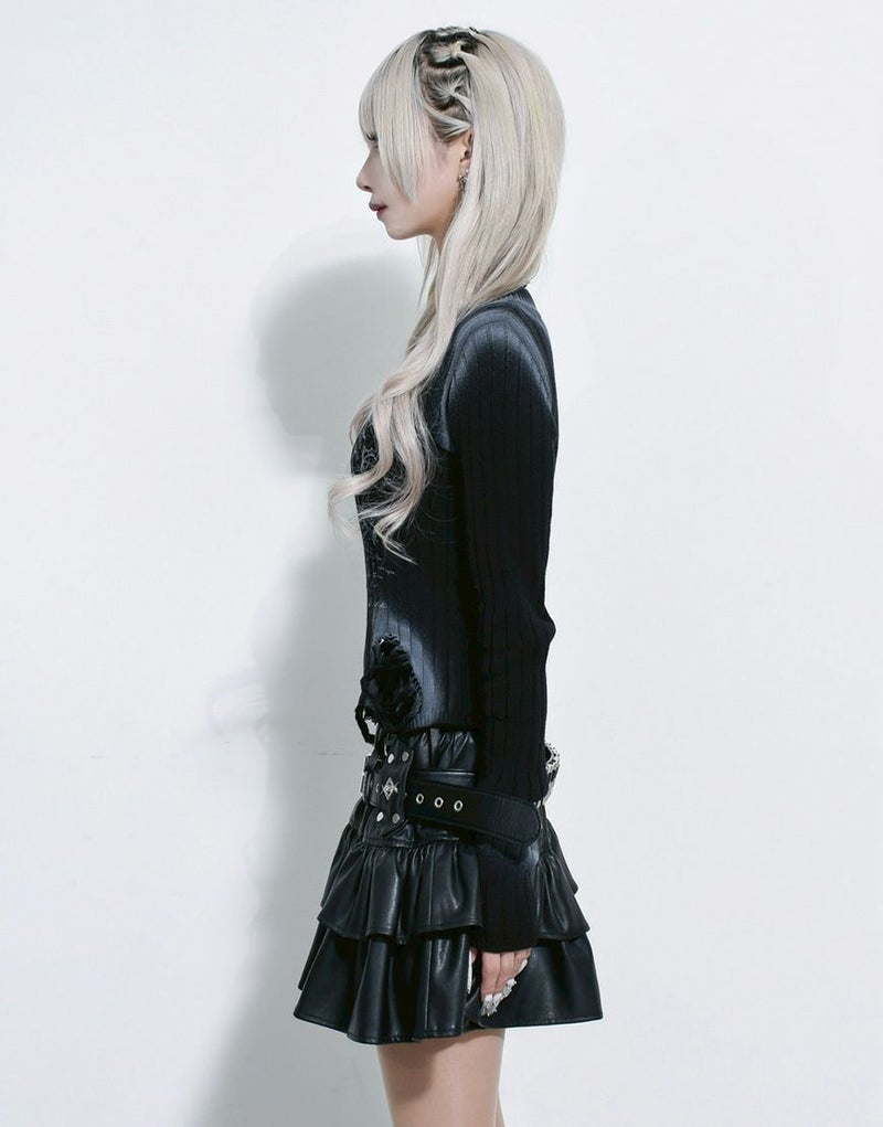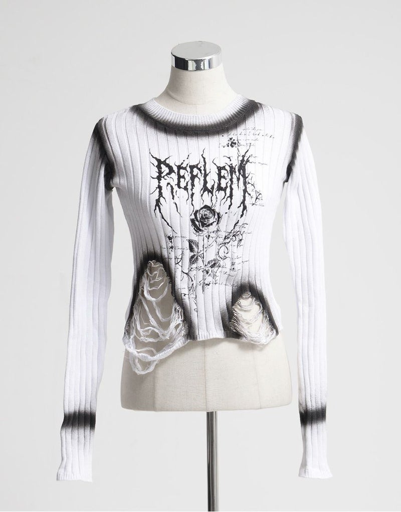 REFLEMらしい退廃的なムードを纏ったクロップ丈リブニットトップス。