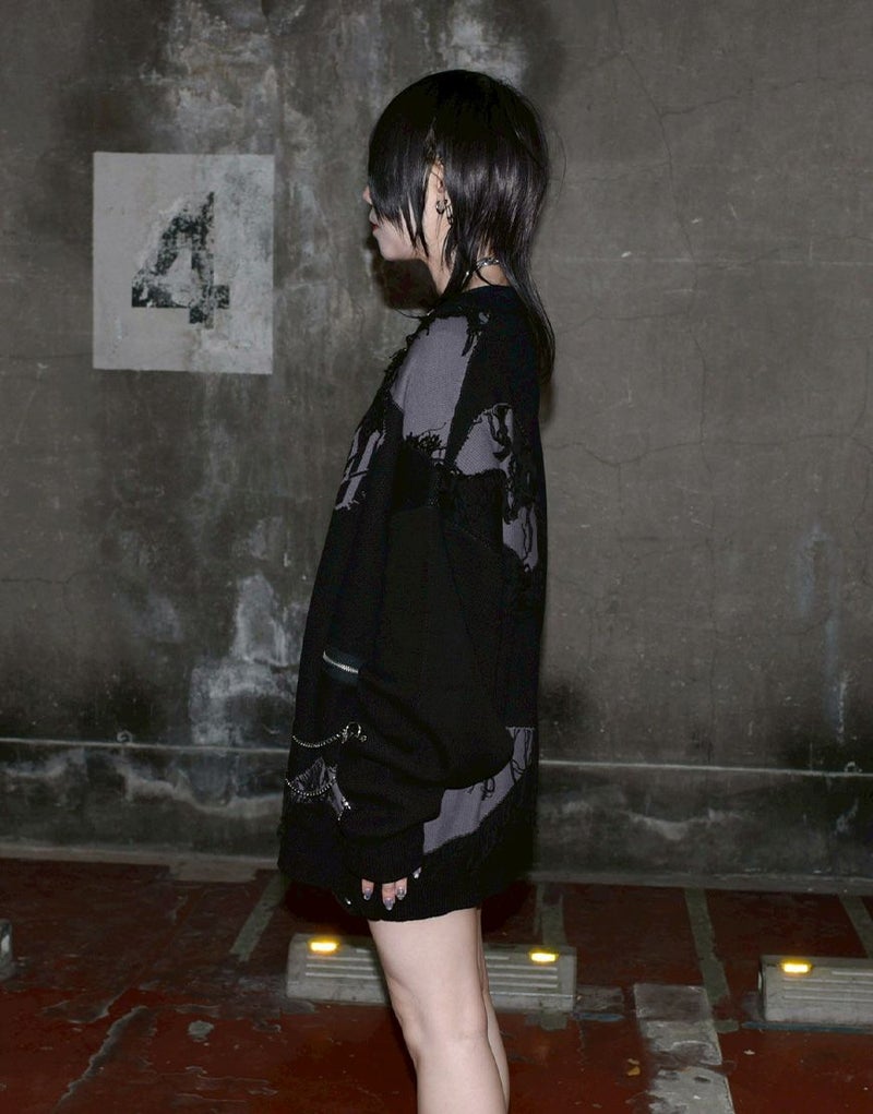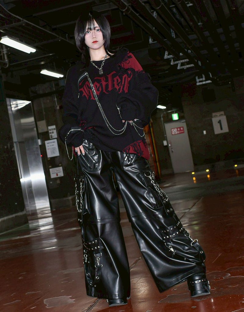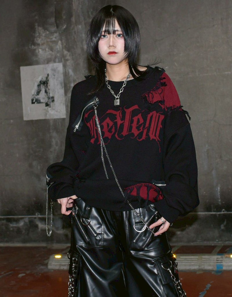地雷系・サブカル・ダークストリートスタイルはもちろん、ボトムを選ばず主役として活躍する一着となっています。