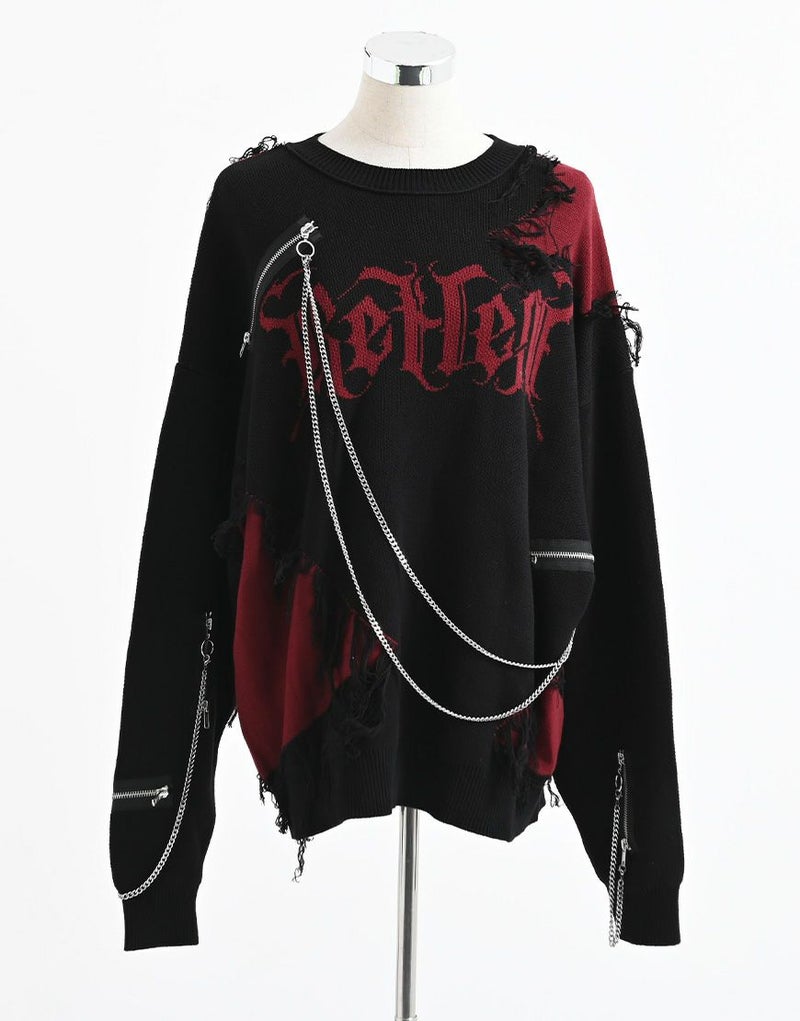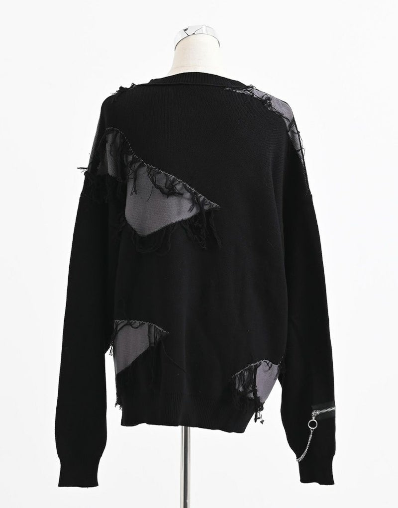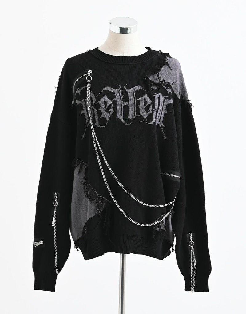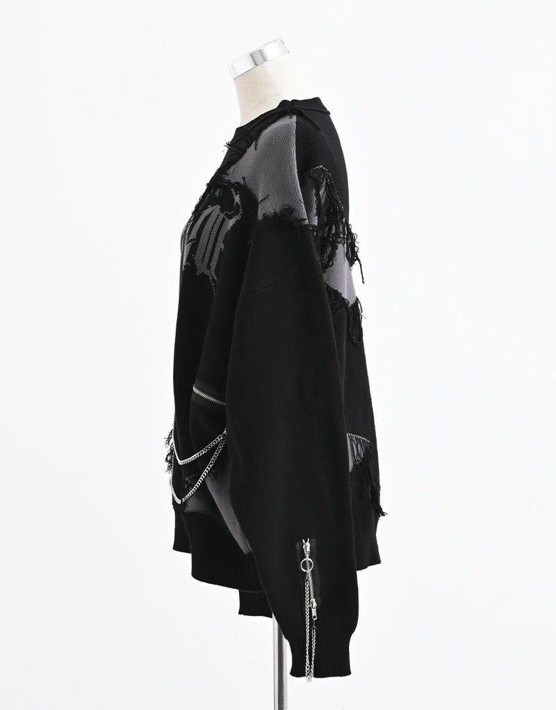 REFLEMらしい退廃的なムードを落とし込んだ、存在感抜群のダメージニットプルオーバー。