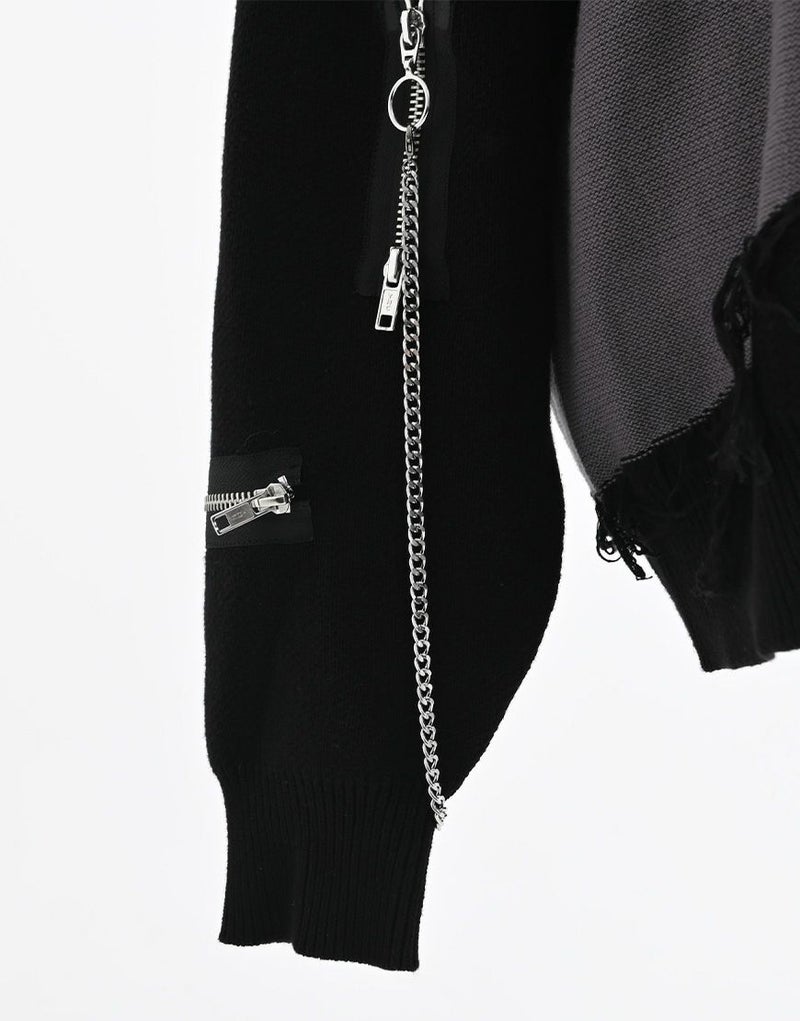 フロントとスリーブにはファスナーディテールを組み合わせ、付属のチェーンがハードなアクセントをプラスします。