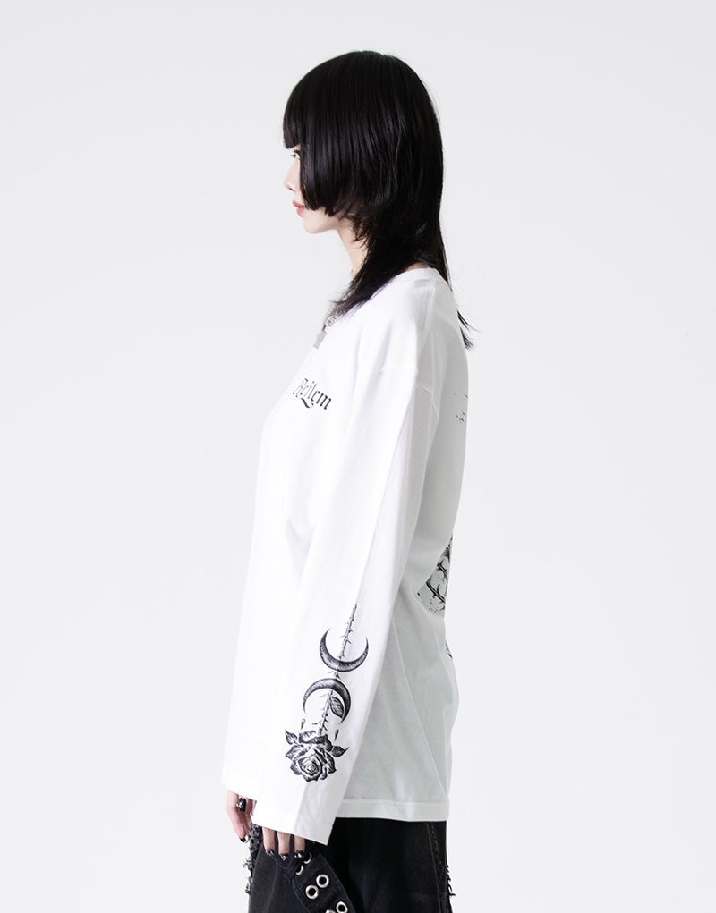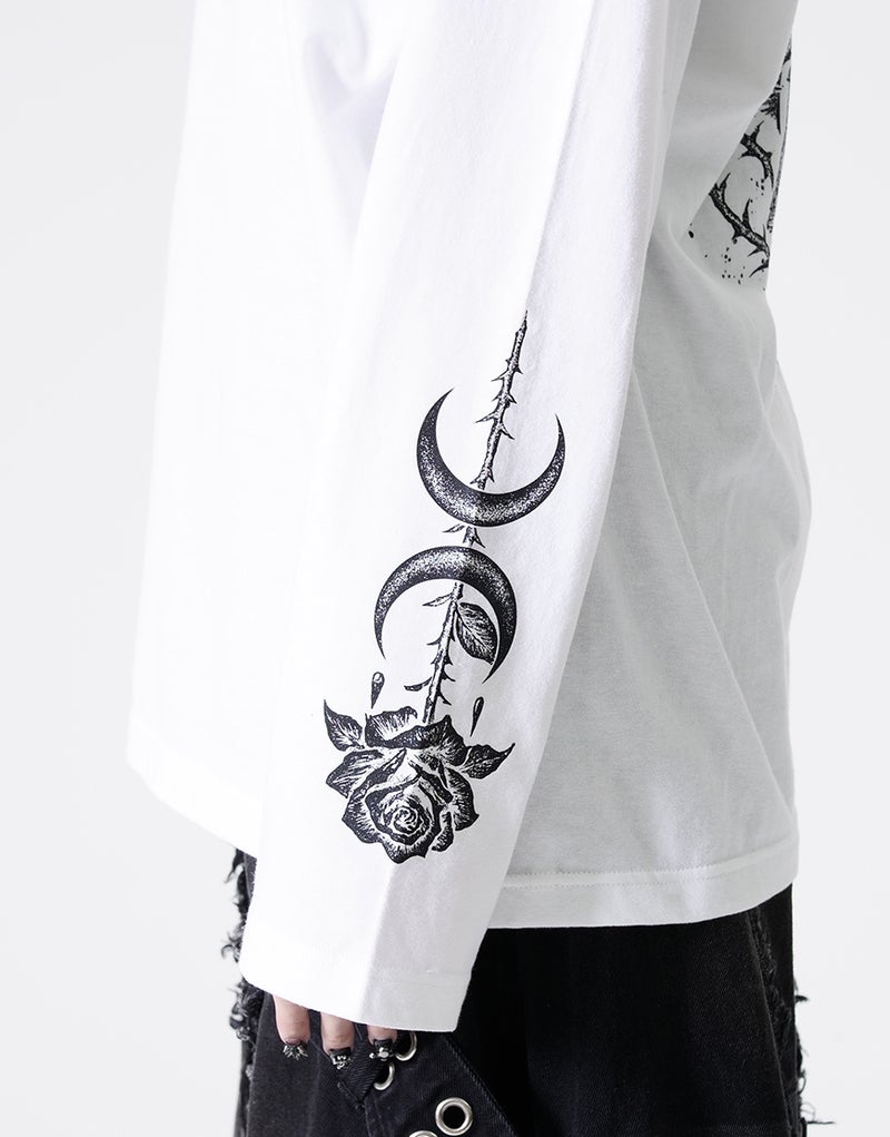 退廃的な世界観を全面に落とし込んだ、インパクト抜群のプリントロングスリーブTシャツ。