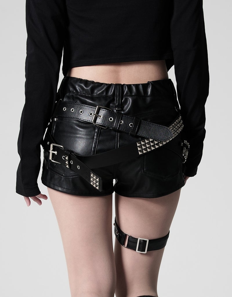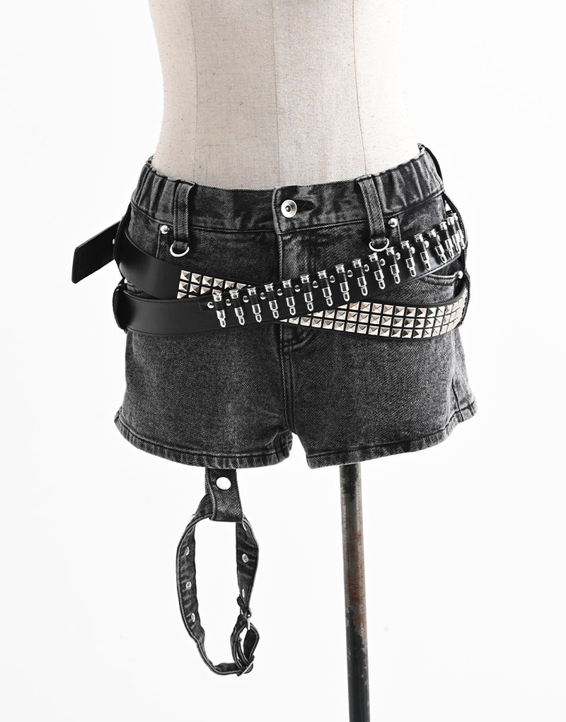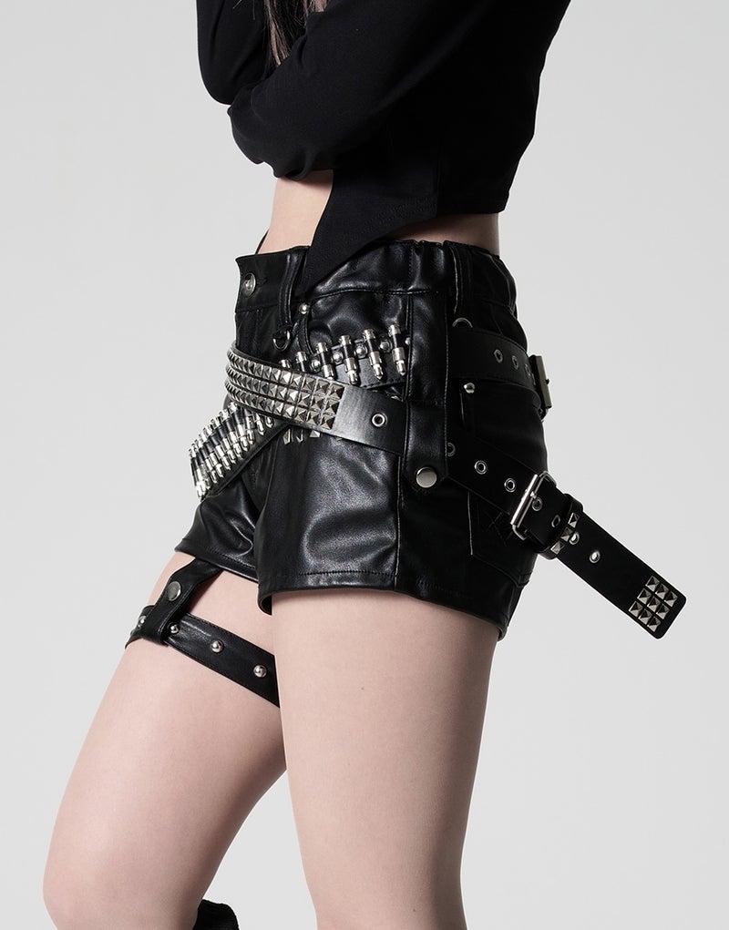 スタッズの無骨さとメタルパーツの光沢が、サブカル・ゴシックな世界観をより一層引き立てます。