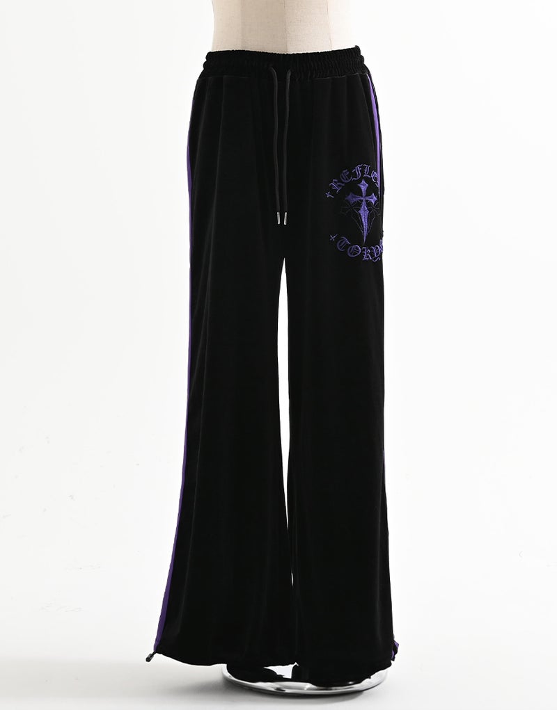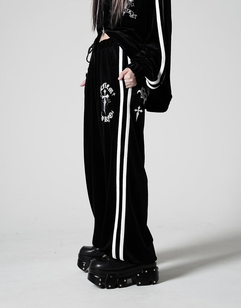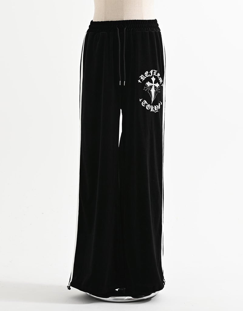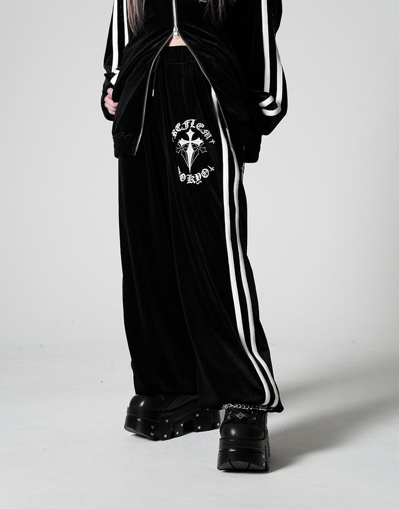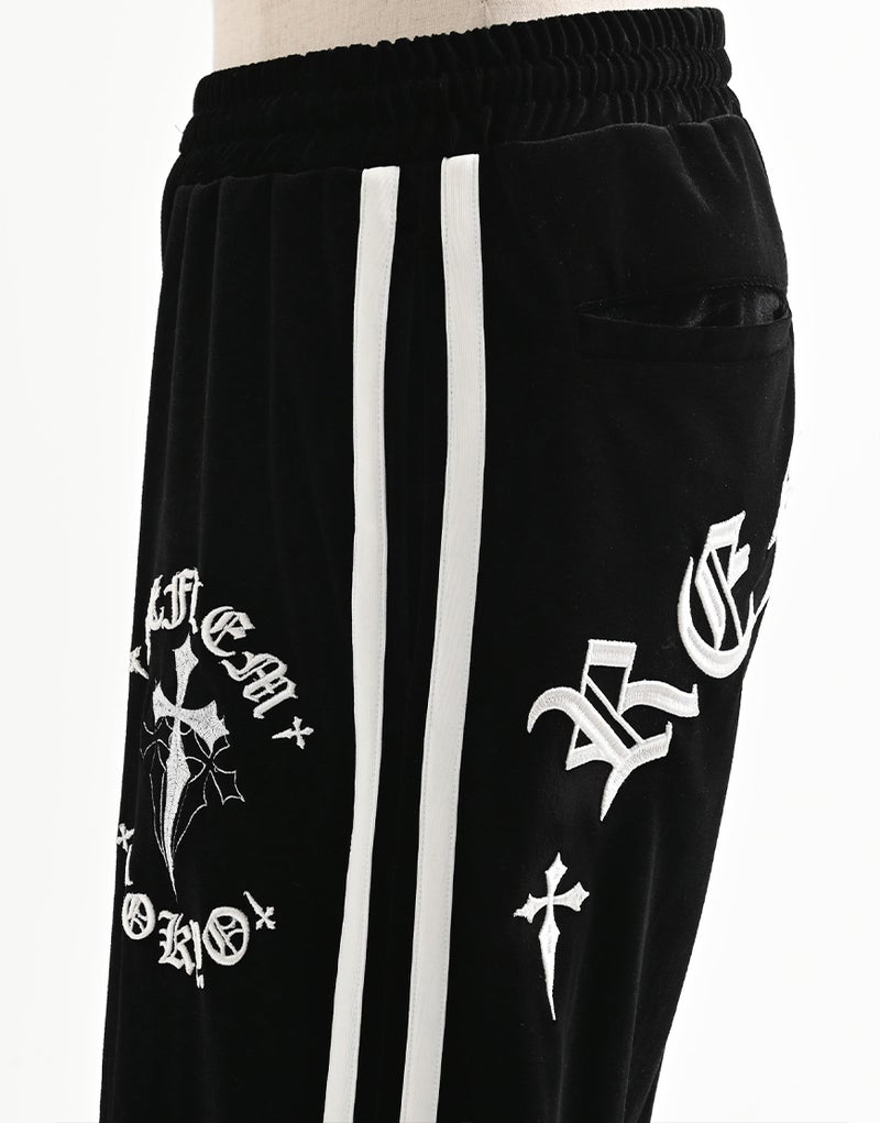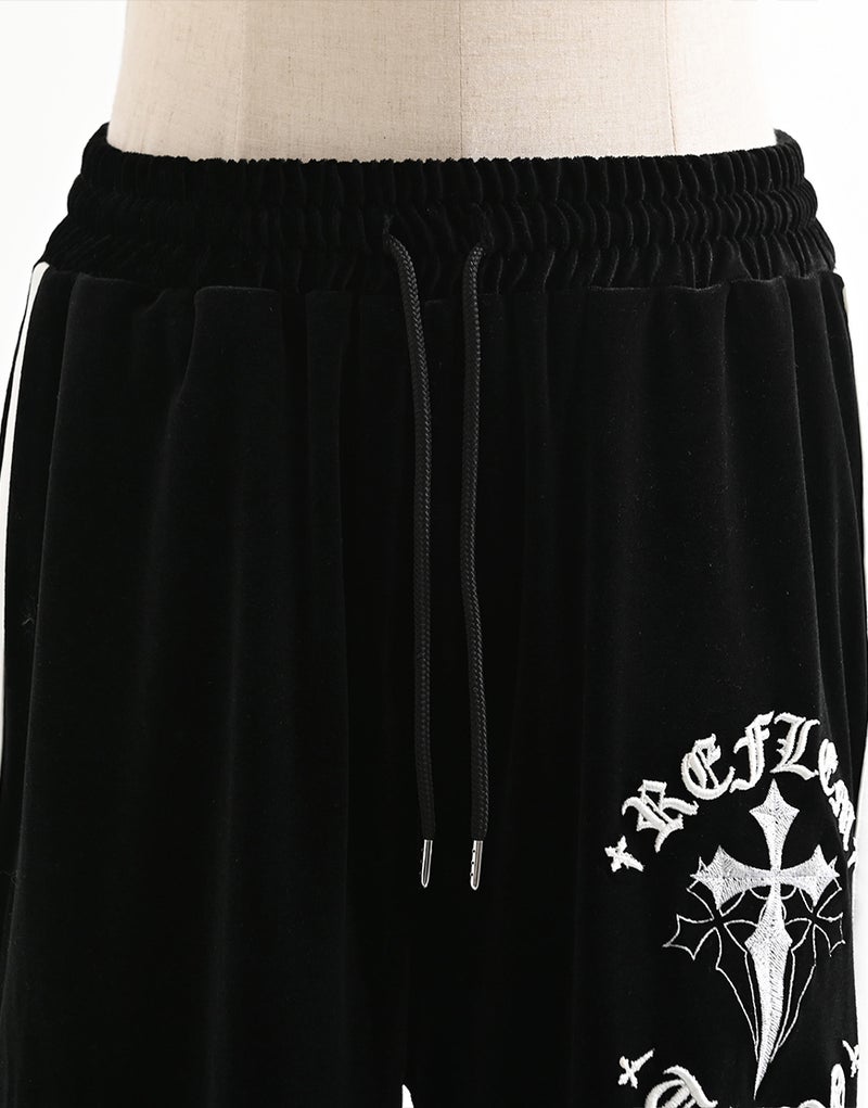 重厚感のある刺繍ロゴとクロスモチーフを大胆に配した、存在感抜群のジャージパンツ。