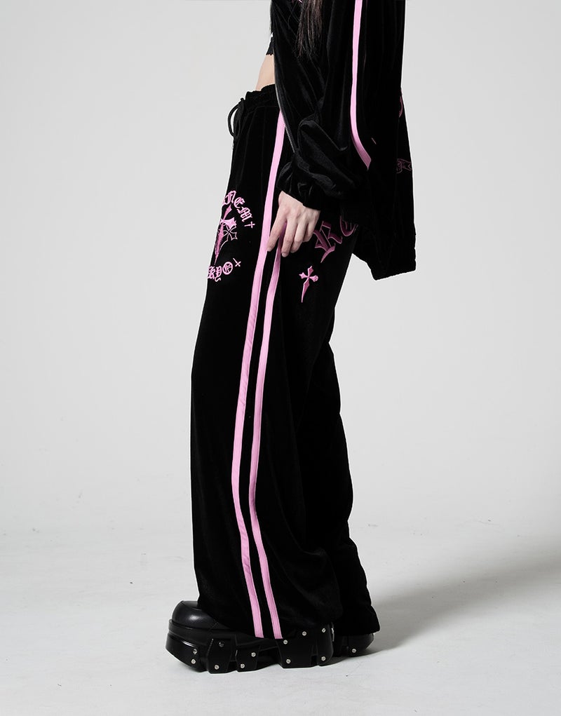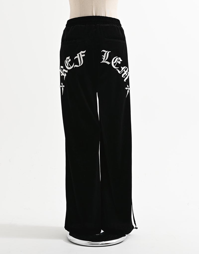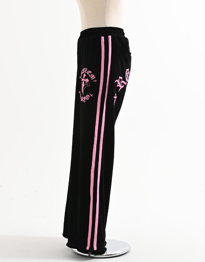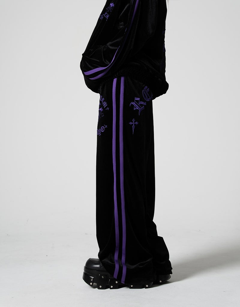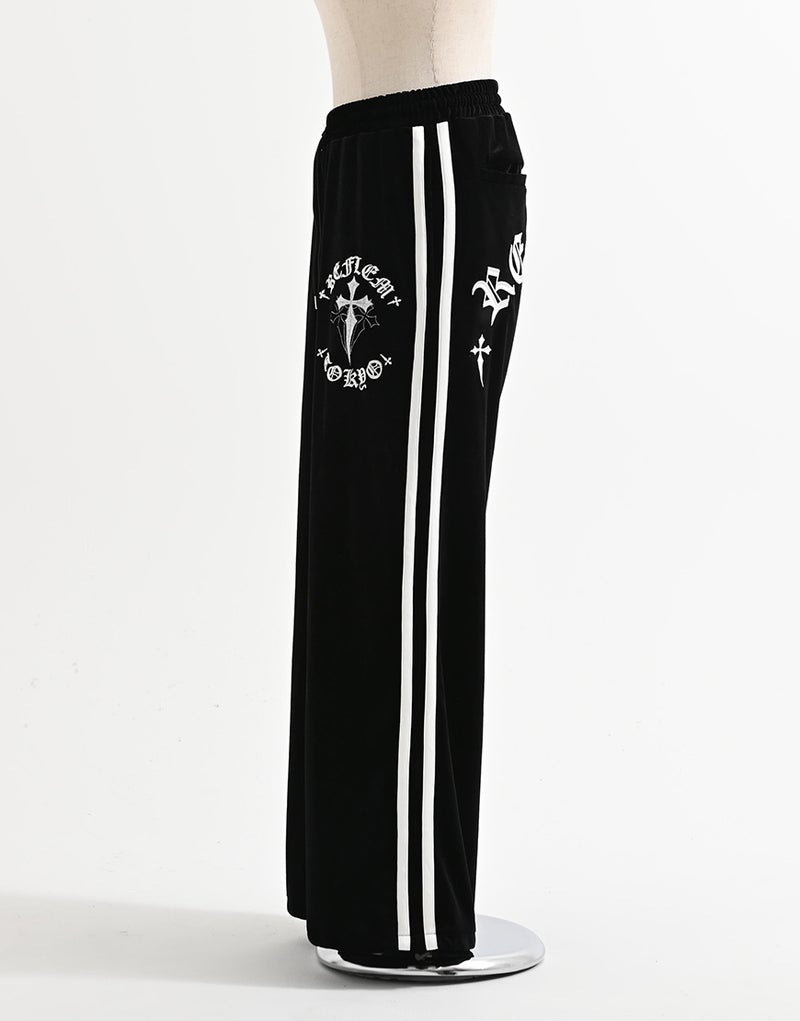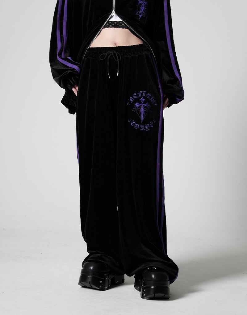 重厚感のある刺繍ロゴとクロスモチーフを大胆に配した、存在感抜群のジャージパンツ。
