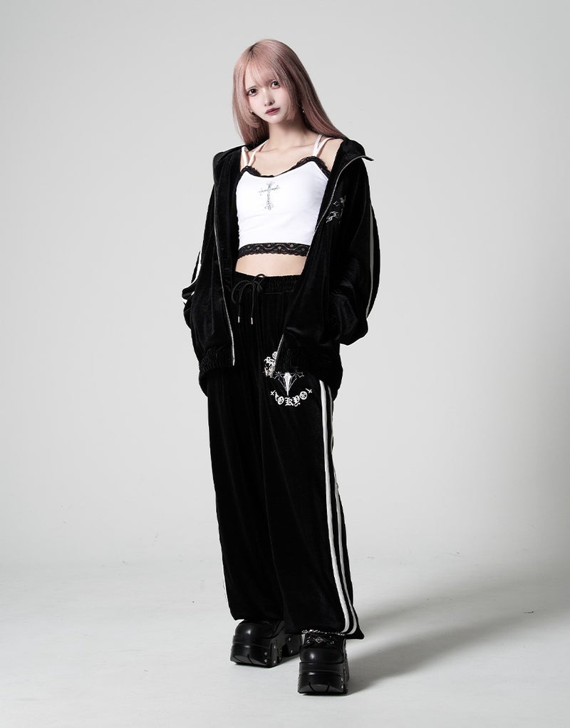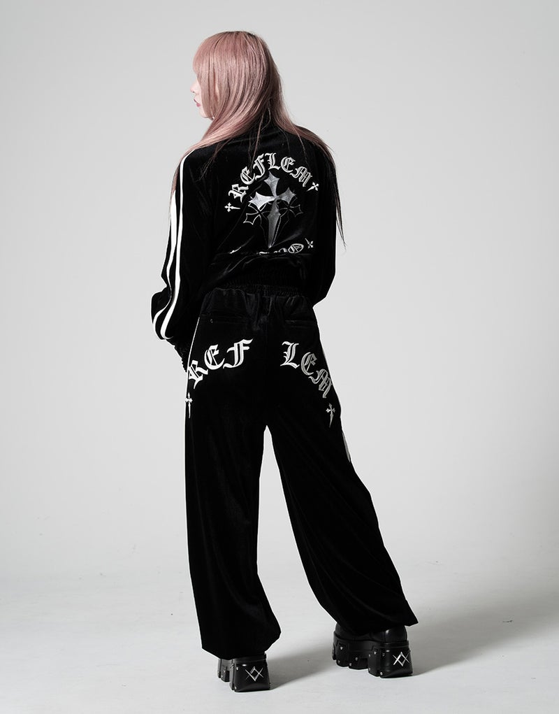 同時発売の【RF26-H03 クロス刺繍ベロアトラックジャケット】とセットでの着用もオススメです。