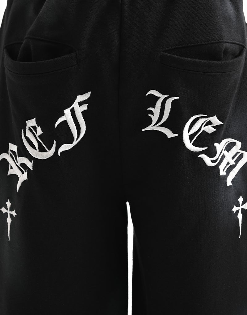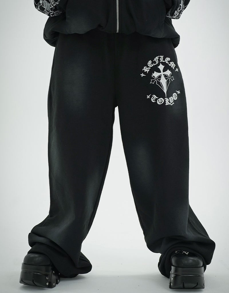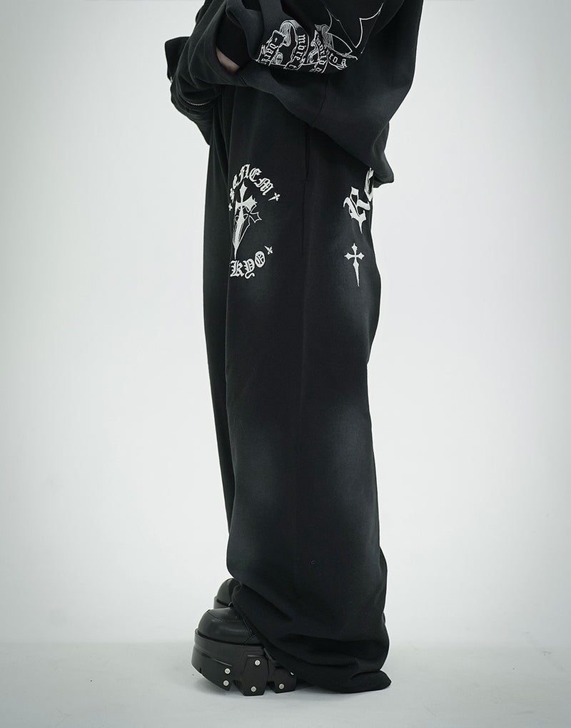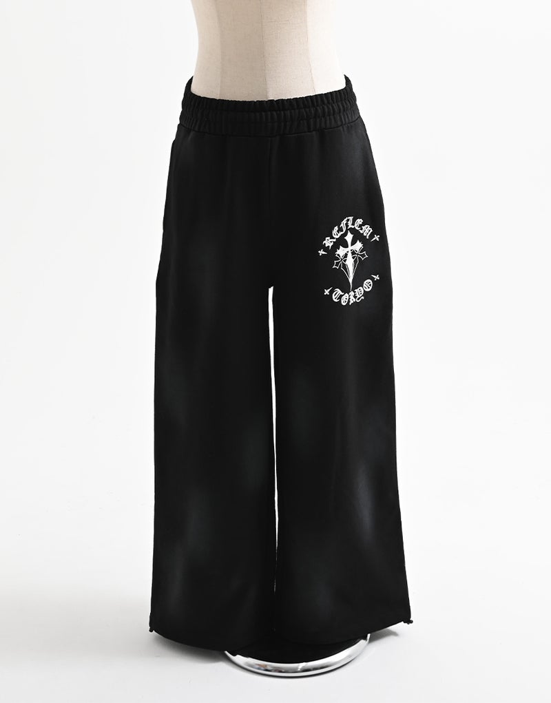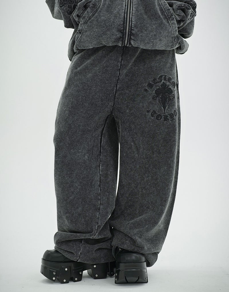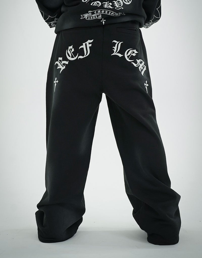 ゴシックテイストのアートワークを刺繍で表現したワイドシルエットのスウェットパンツです。