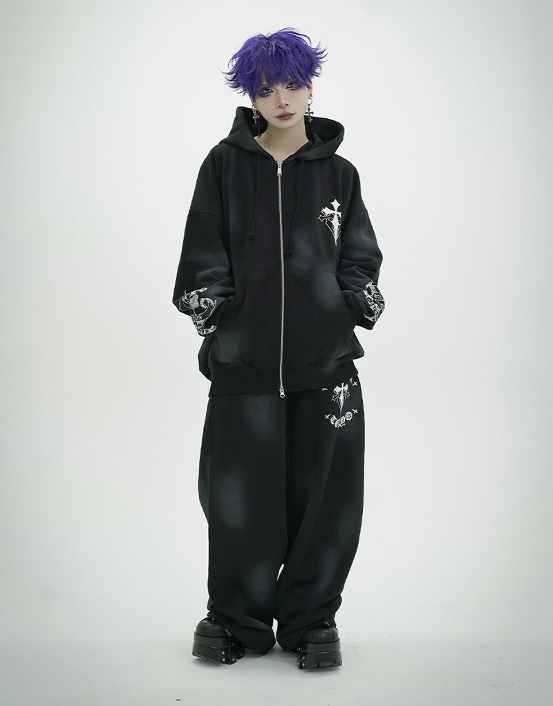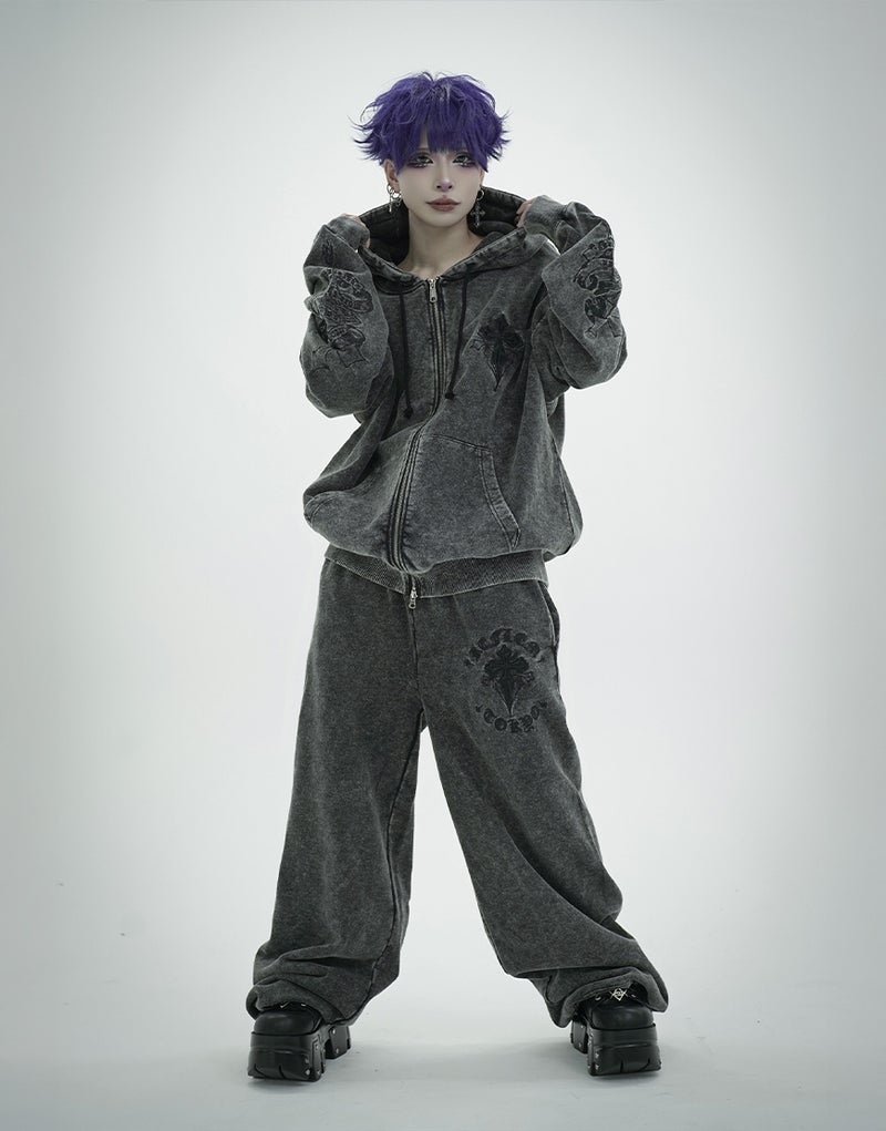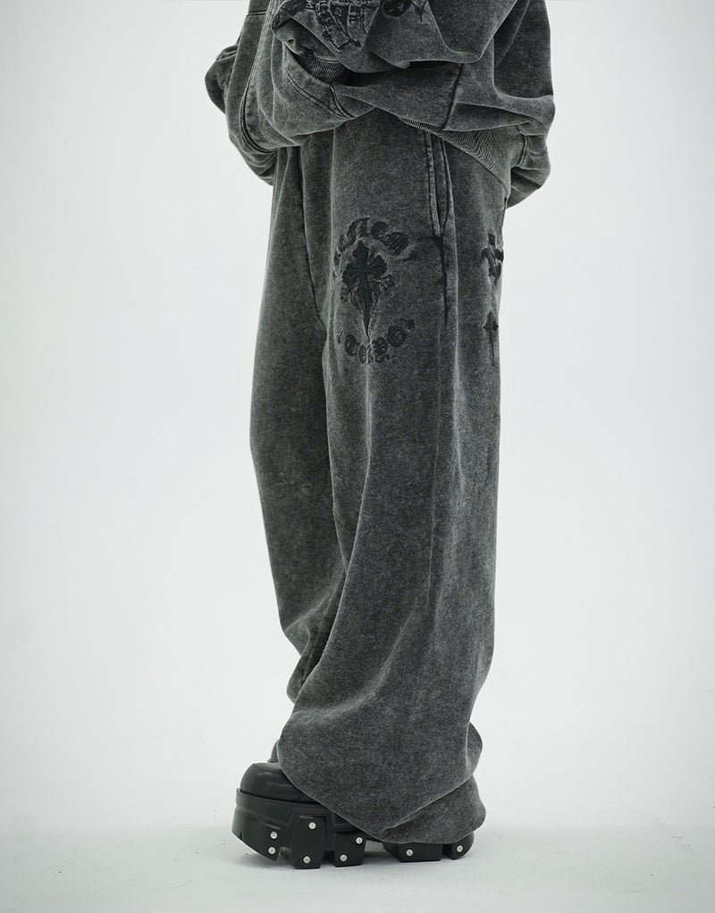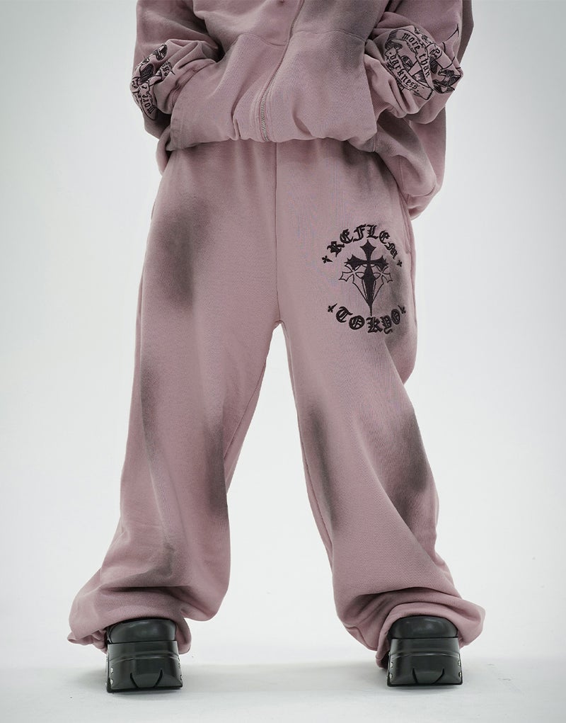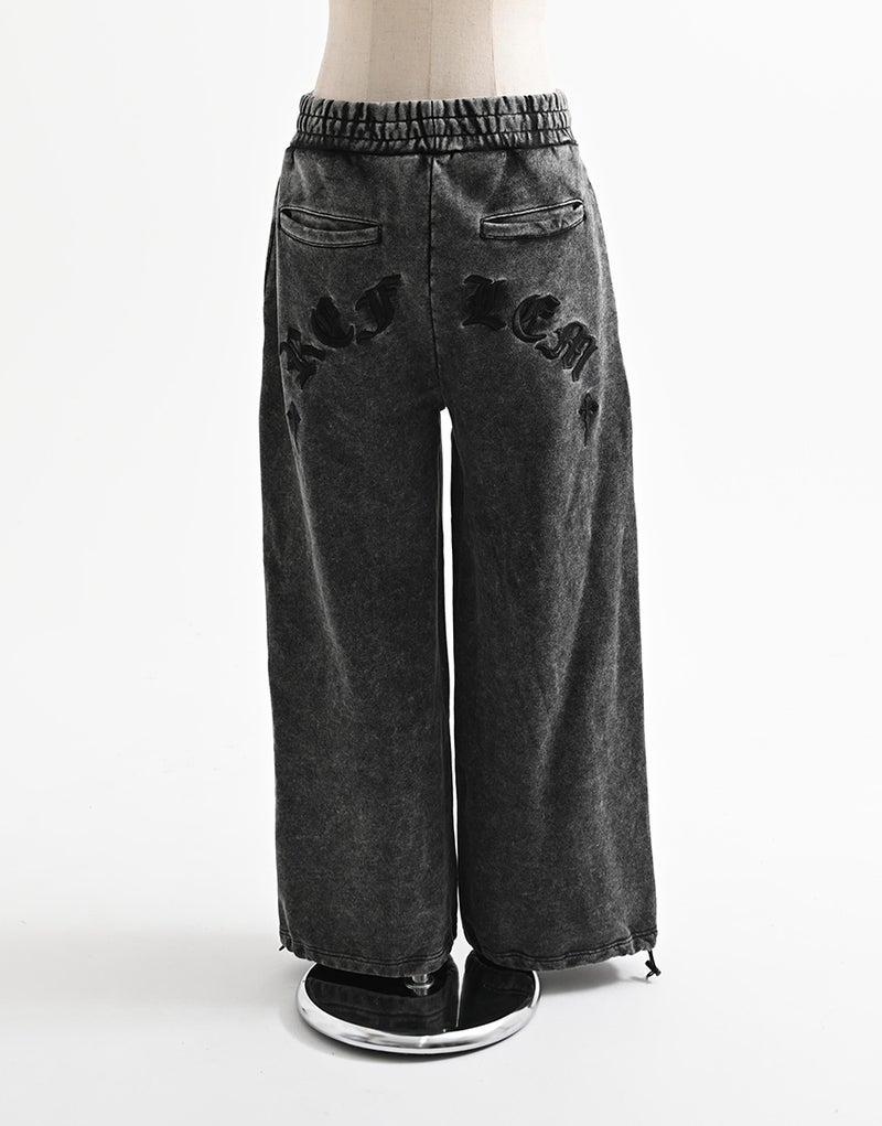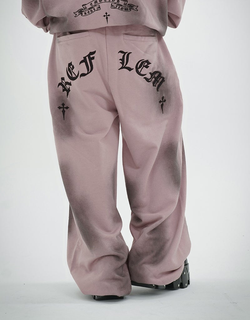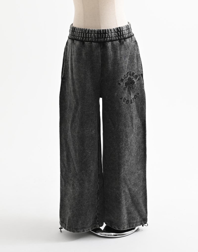 ゴシックテイストのアートワークを刺繍で表現したワイドシルエットのスウェットパンツです。
