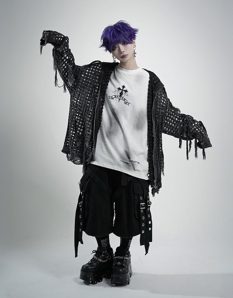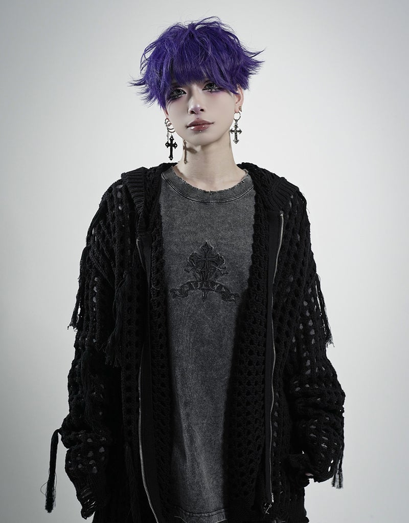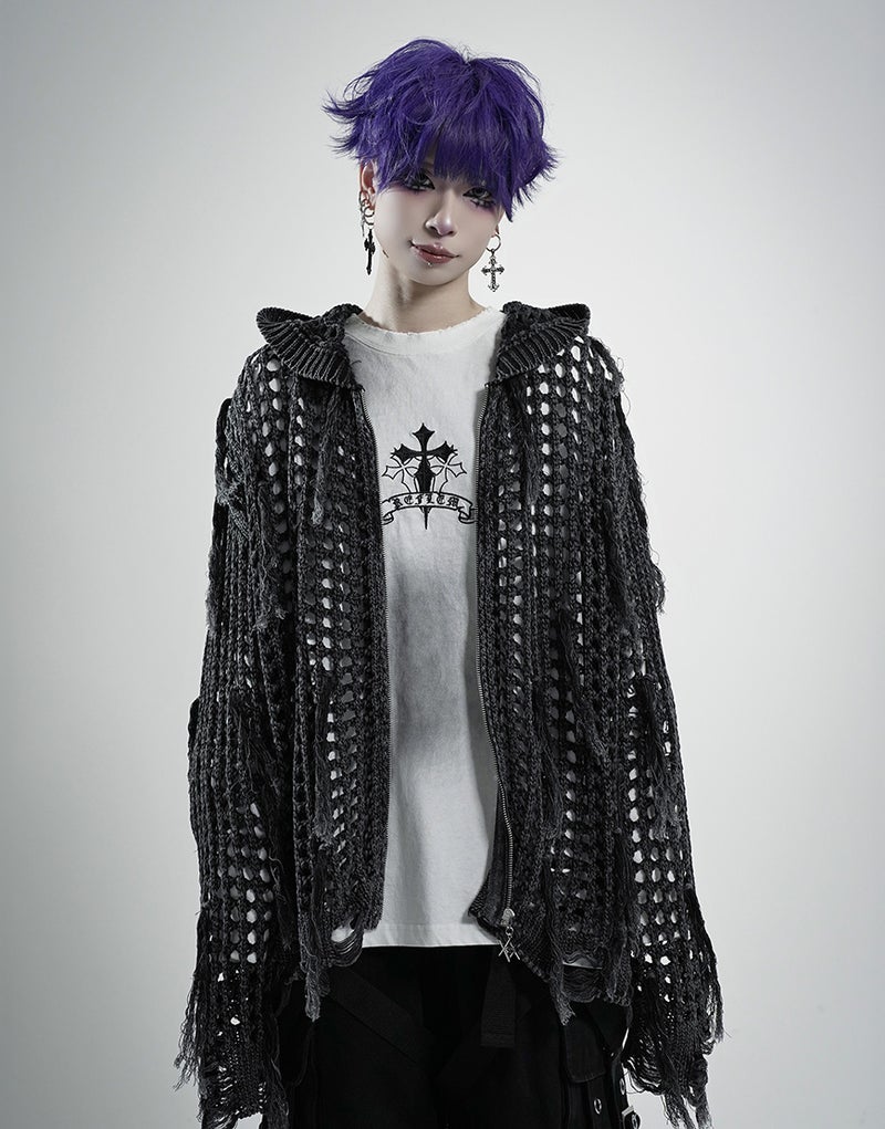 RF25-R02「格子編みニットジップアップパーカー」をベースに、フリンジディテールを大幅にアップデートした増量バージョンです。