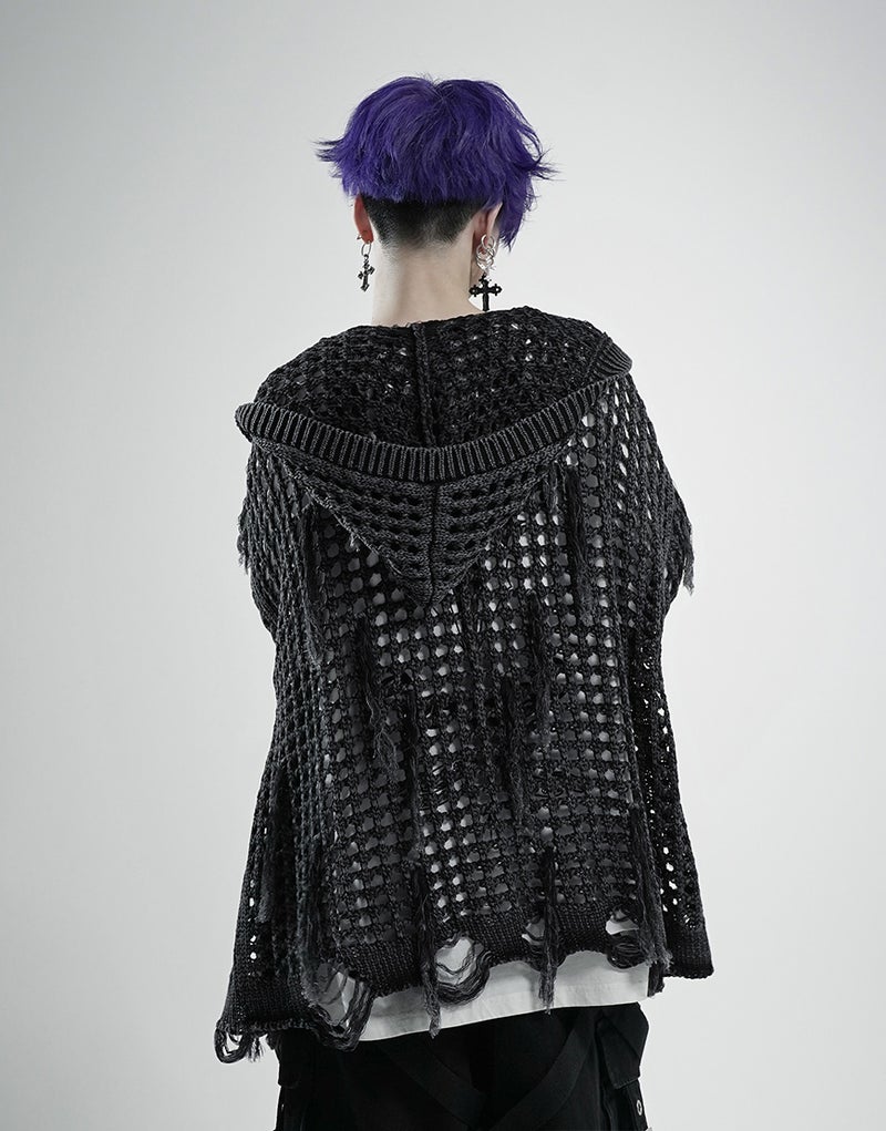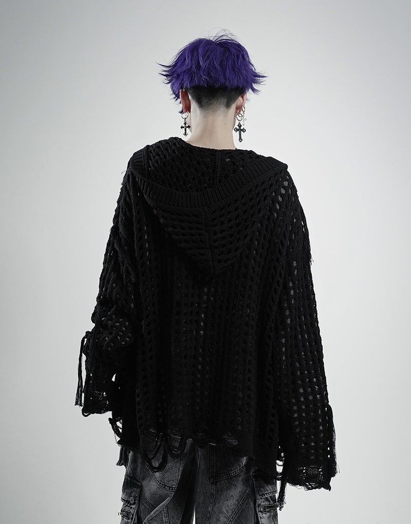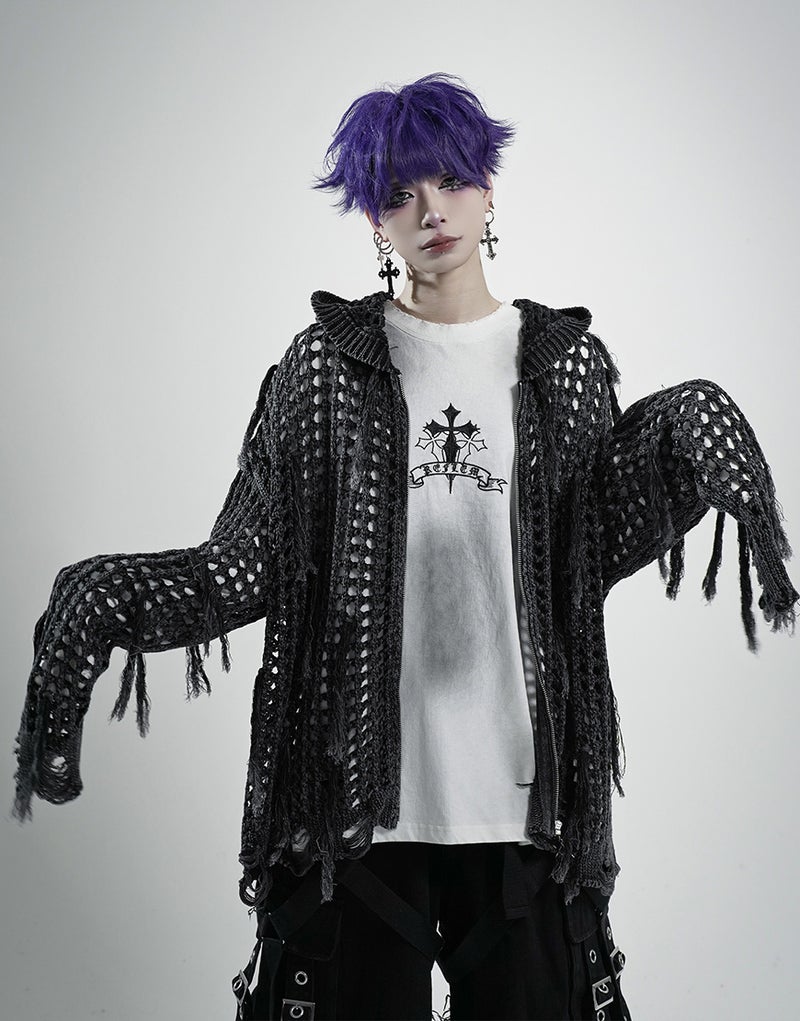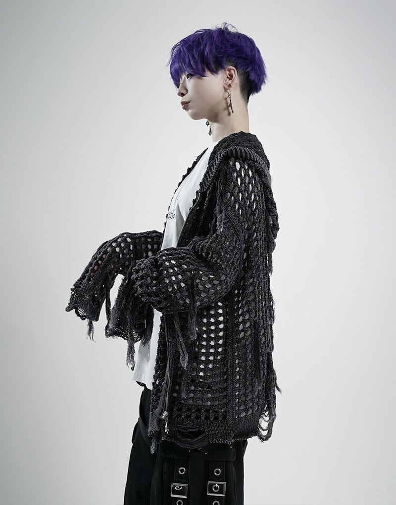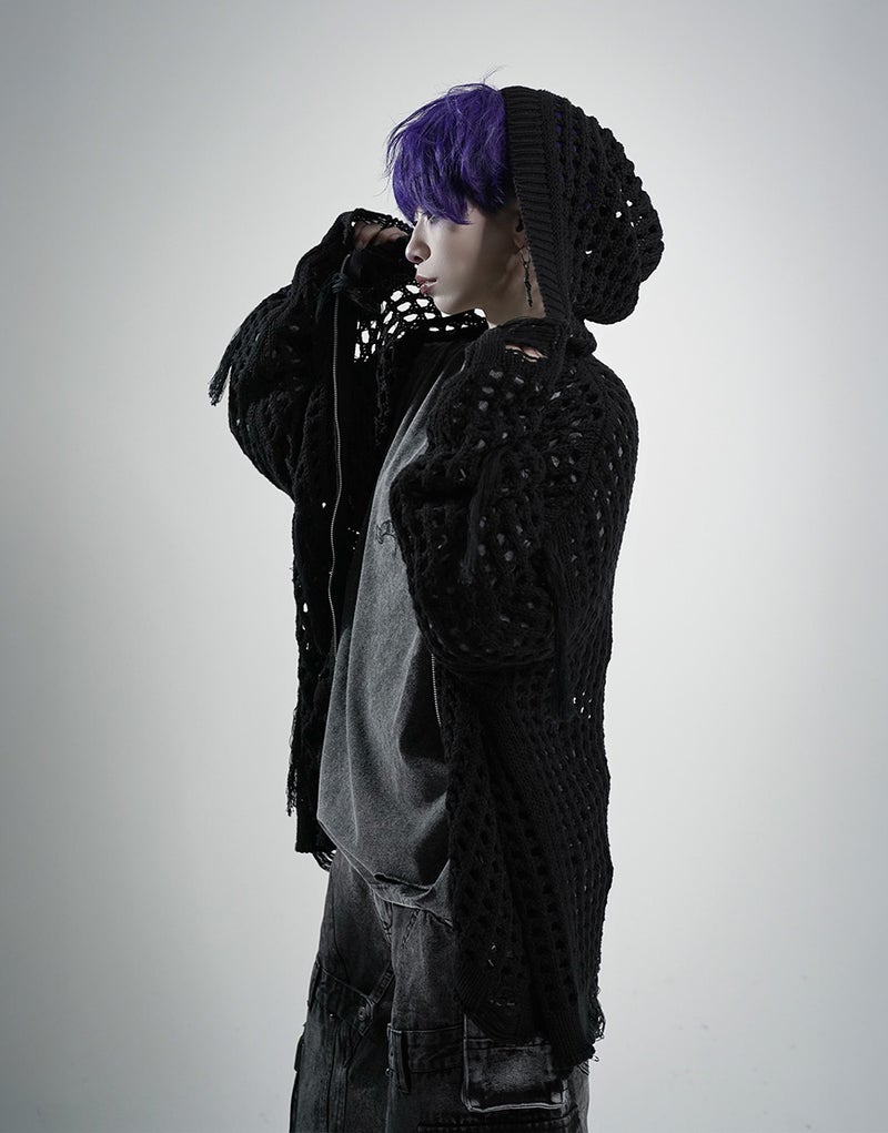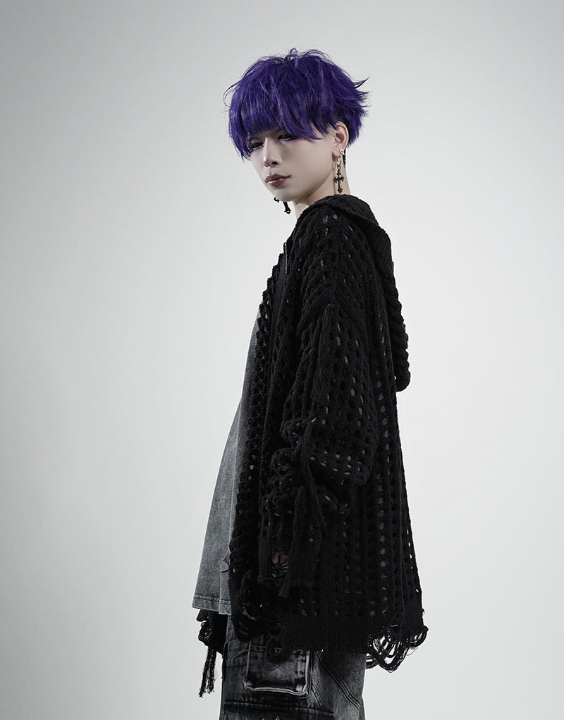 グランジ、モード、サブカルテイストまで幅広く対応できる、存在感抜群のニットパーカーです。