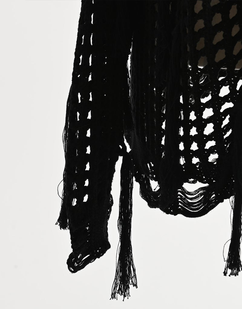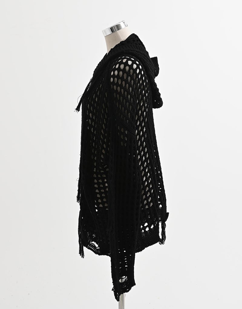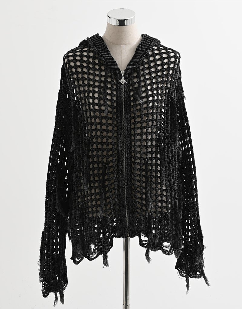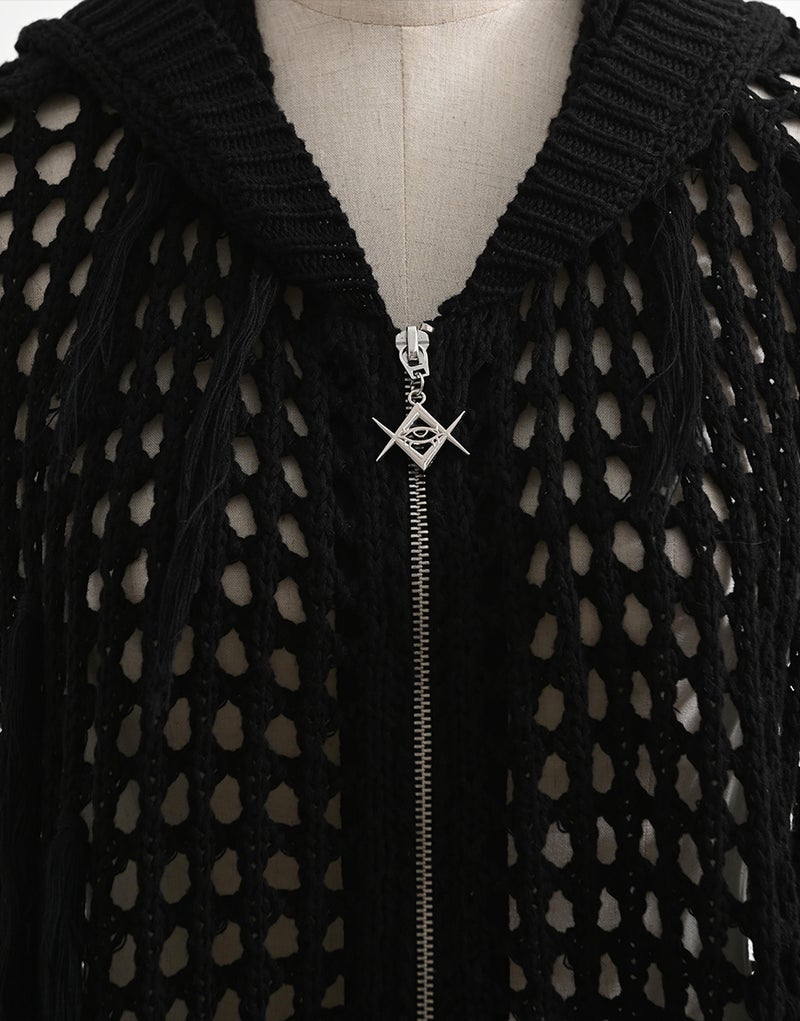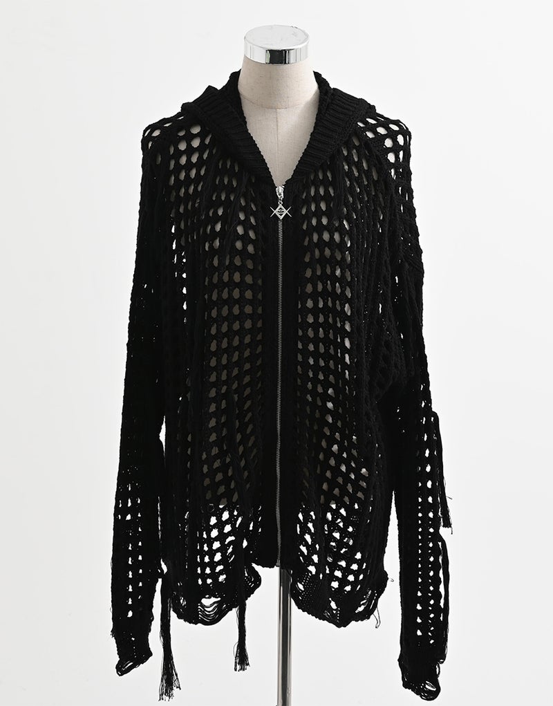 REFLEM【レフレム】格子編みフリンジニットジップパーカー/全2色