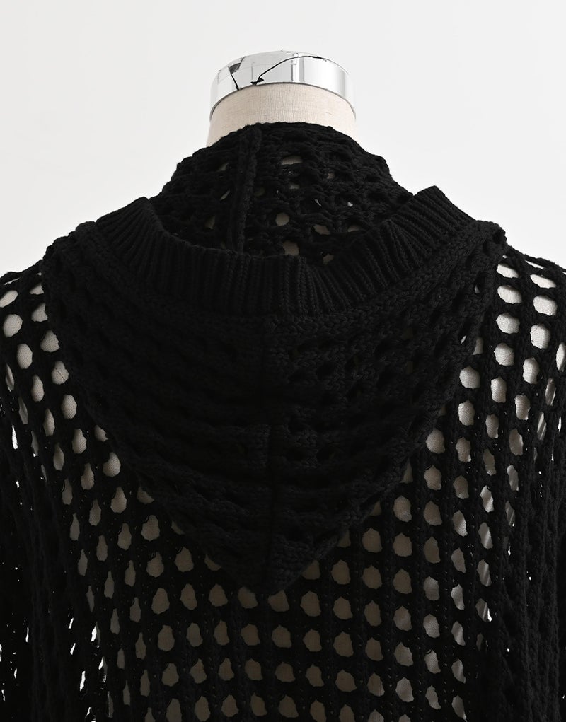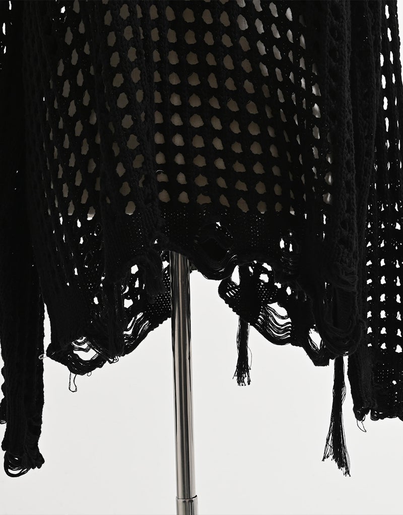 全体に施された格子状の編み地が、レイヤード次第でさまざまな表情を演出。