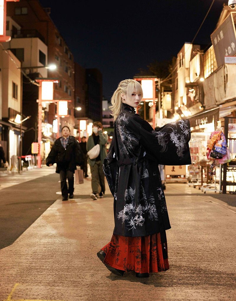 和装としてはもちろん、モードなコーディネートにもぴったりな一枚。