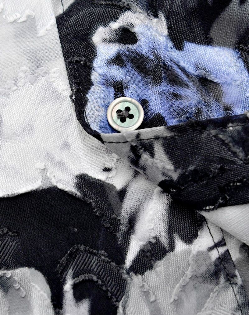 ジャガードとシフォンをMIXした様なシースルー素材でデザインされたローズシャツです。