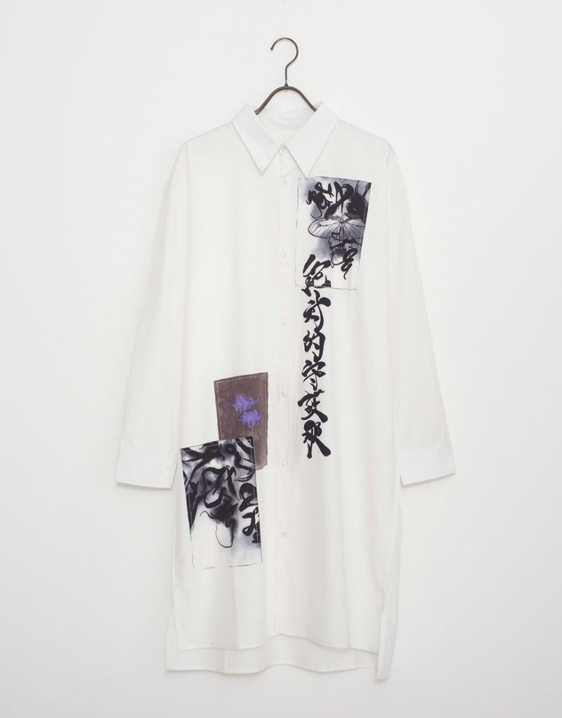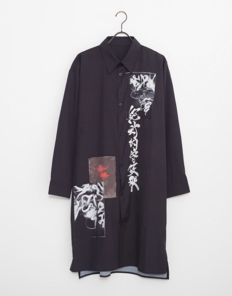 ポリエステル素材を使用した優雅な光沢と滑らかな肌触りのロングシャツです。