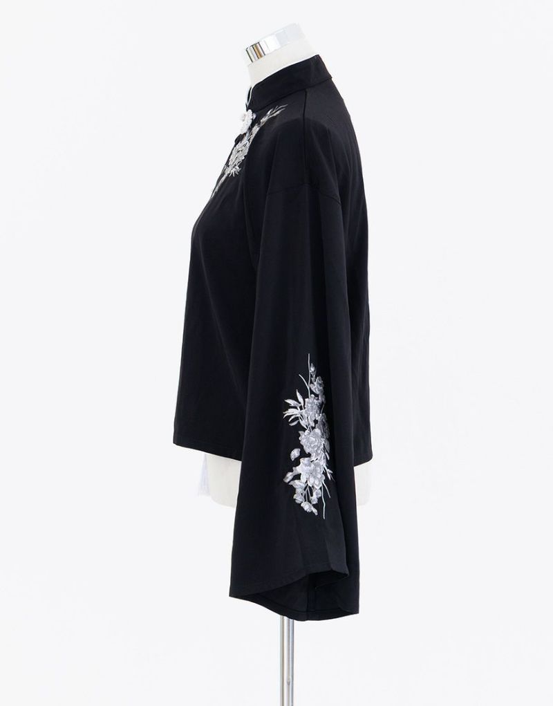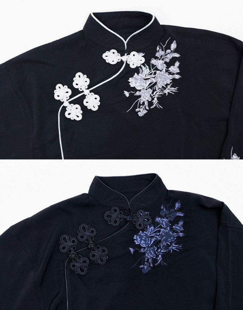 BLK:ブラック刺繍+黒パイピング&黒チャイナ釦