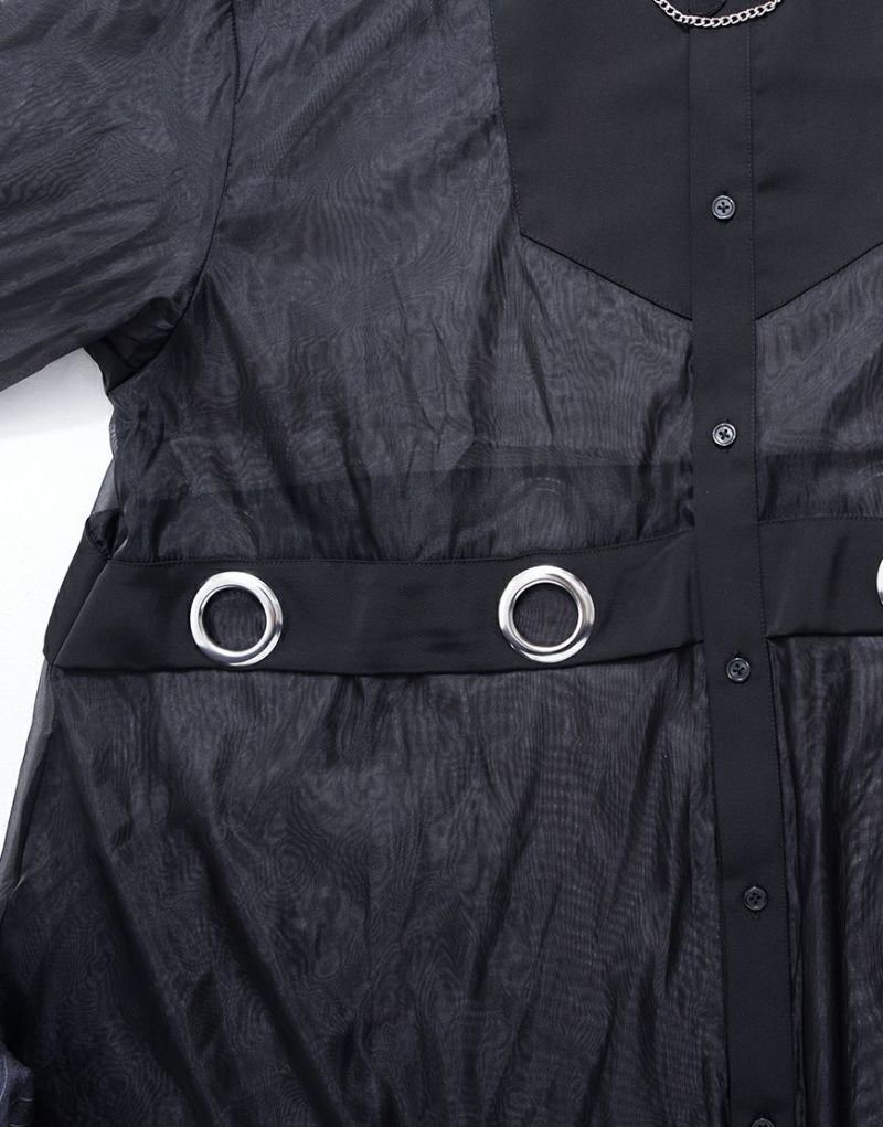 オーガンジー生地と若干の光沢があるシャツ生地を切り替えたデザインが特徴です。