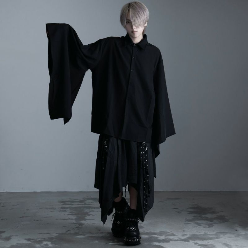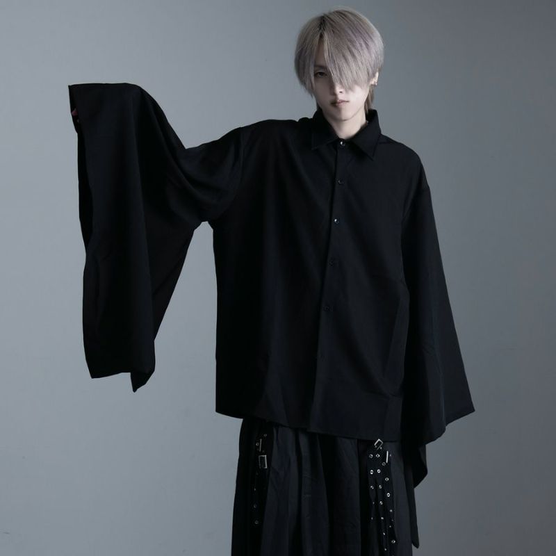 袖が着物のようにフレアシルエットにデザインされた長袖シャツ。