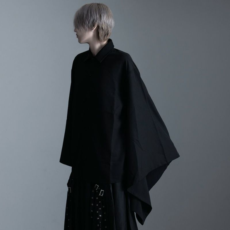 オールブラックカラーのモードな雰囲気に和テイストがミックスされた個性派シャツとなっています。