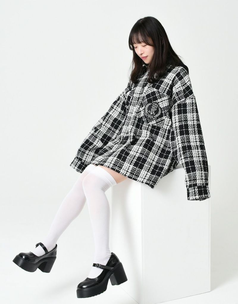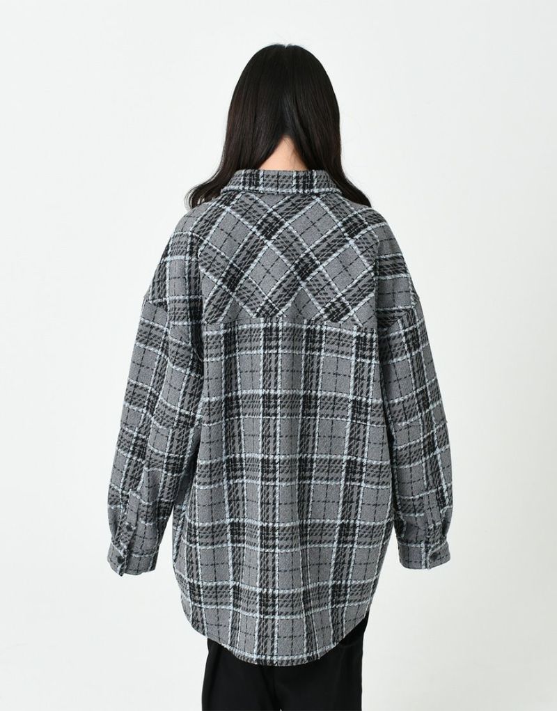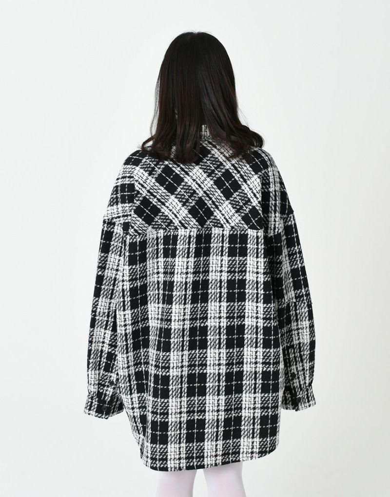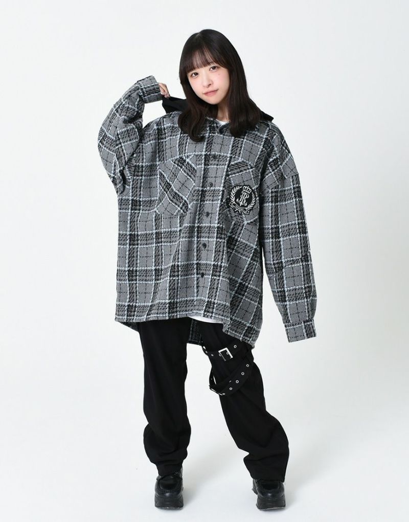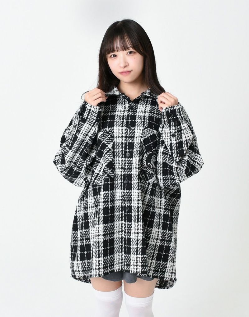 厚手のチェック生地を使用。スウェット生地のフード部分はボタンで脱着可能です。