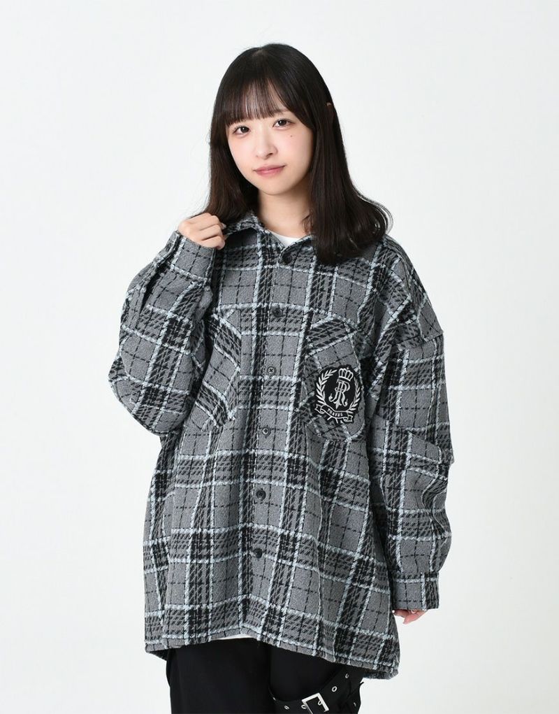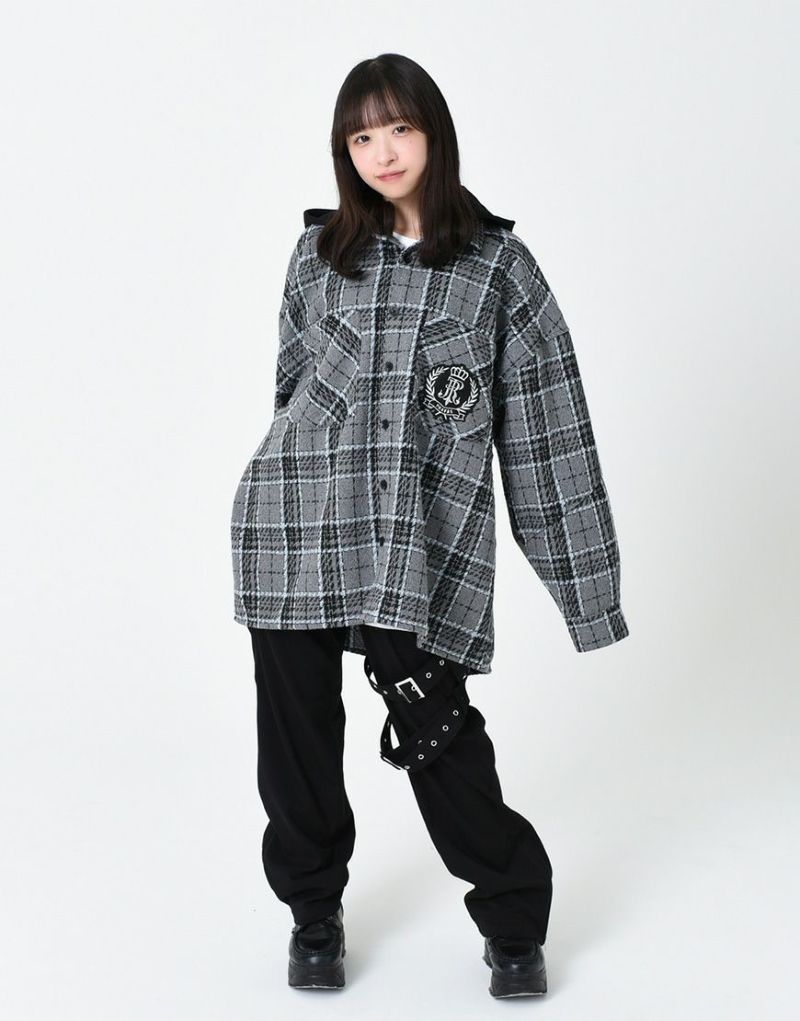 ボタンで着脱可能な裏毛フード付きのチェックシャツです。
