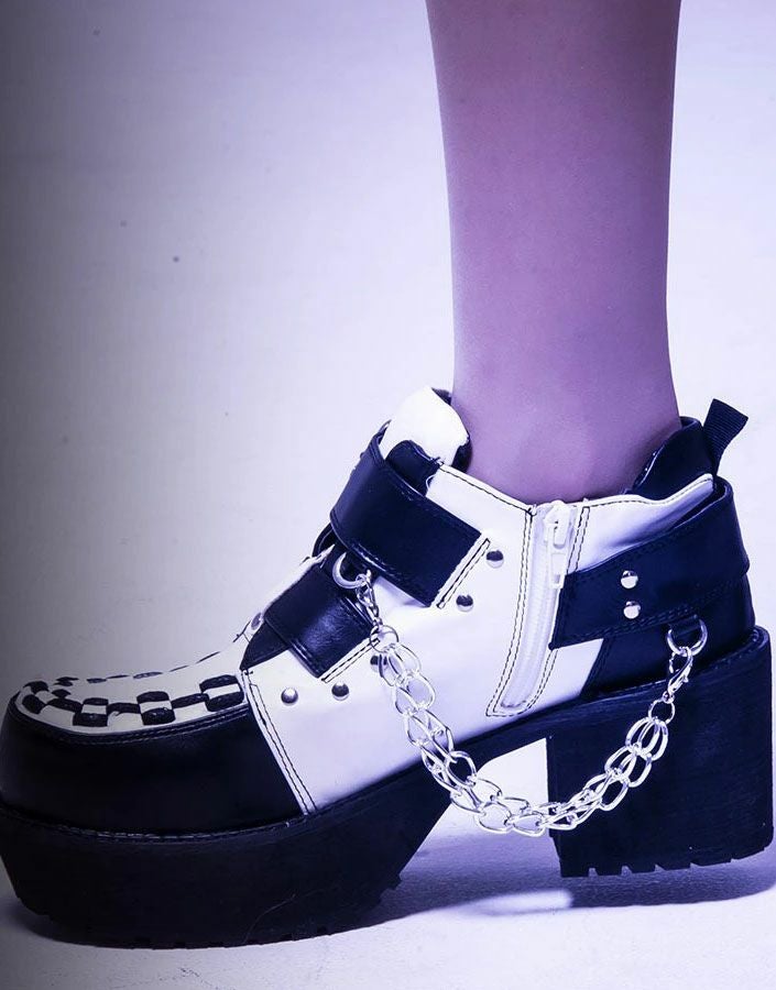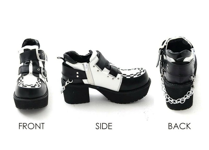 個性的なデザインで話題のYOSUKEから レディースの厚底ベルテッドシューズが入荷! ボリューム感のある底周りが目を引く、厚底ベルテッドシューズ。 かかとにはチェーンをあしらい、ダークな雰囲気に。 印象的な太めのダブルベルトもポイント。 パンクスタイルやV系スタイルにお勧めです。 同デザインのメンズモデルもあります♪ ゴス、パンク、ロック、ゴシックと相性抜群の ロックなヴィジュアルは抜群にかっこよくオススメです。