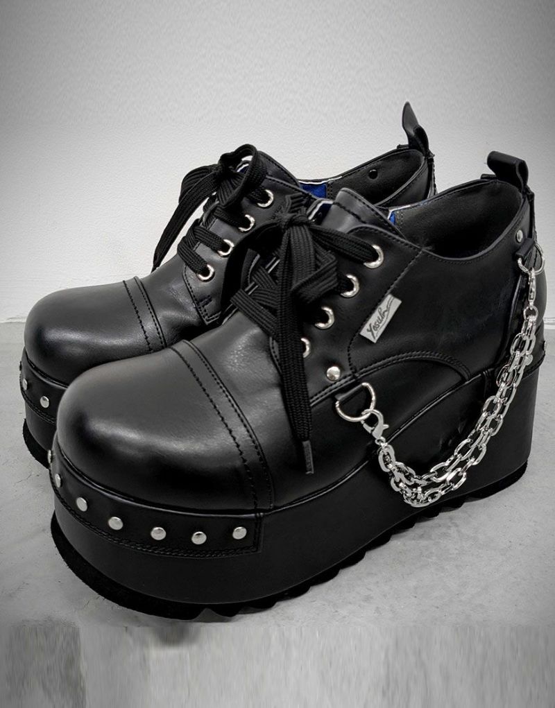 YOSUKE【ヨースケ】メンズチェーン付きスタッズトゥプラットフォームシューズ/全1色
