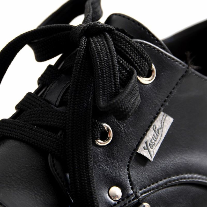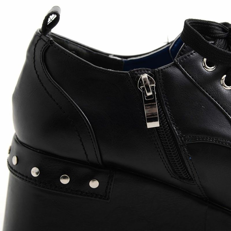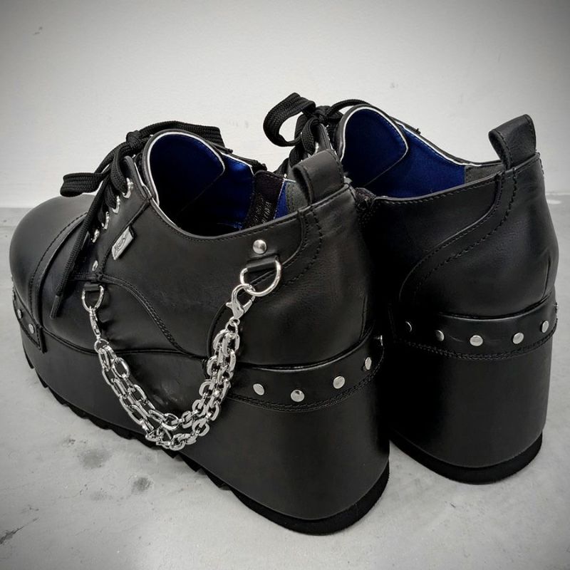 着脱可能なチェーンがアクセントになった厚底レースアップシューズ。