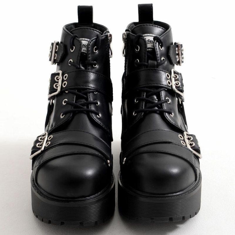 YOSUKEからメンズハトメベルトデザインレースアップブーツが入荷。 [防滑ソール]を使用したyosukeの厚底レースアップブーツ。 ハトメ使いのベルトデザインがYOSUKEらしいデザインです。 内側ジッパーでサッと脱ぎ履き出来るのも嬉しいポイント。 地雷系スタイルやV系スタイルまで幅広く活躍してくれます。