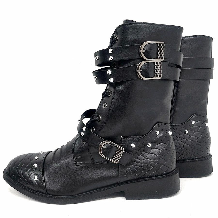 YOSUKE【ヨースケ】レディースデザインベルトスタッズプラットフォームブーツ/全1色