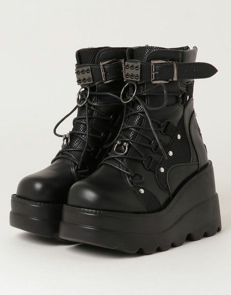 YOSUKE【ヨースケ】レディースデザインベルトスタッズプラットフォームブーツ/全2色