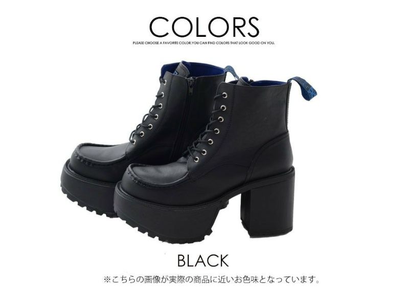 ヨースケらしいボリューム厚底ヒールが目を引く編み上げブーツ。
