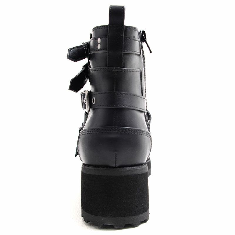 YOSUKE【ヨースケ】の厚底ベルテッドブーツが登場 スタッズと多重ベルトデザインのロックテイストなアイテムです。 ロングノーズが人気のショートブーツは 約6センチの厚底ヒールとシャープなデザインで スタイルアップが叶うシルエットになっています。 内側にはジップが採用され着脱も簡単なのが嬉しいポイント。 V系~地雷系までトレンドスタイルに 幅広くコーデに合わせられるオススメブーツです。 ※モデル画像は照明などの影響により実際の商品と異なる場合がございます。
