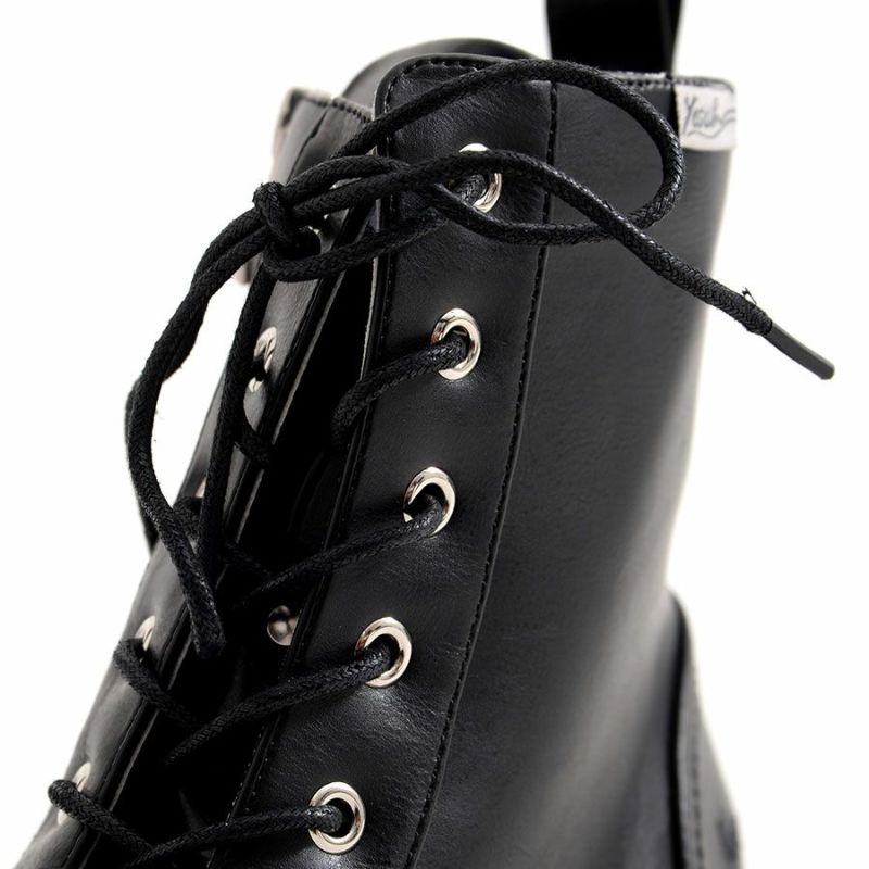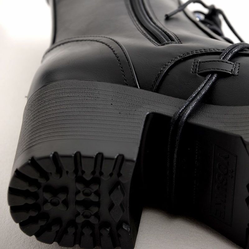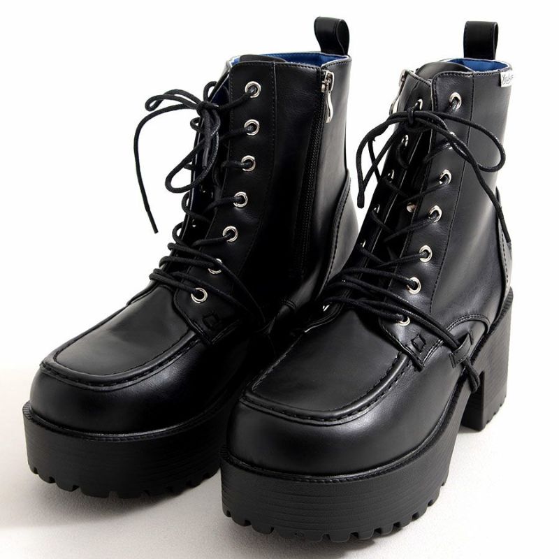 YOSUKEからメンズ紐巻きレースアップブーツが入荷。 軽量なのに存在感のあるソールで、歩きやすさもデザイン性も兼ね備えた厚底ブーツ。 変形ヒモ通しのYOSUKEらしいデザインです。 内側ジッパーでサッと脱ぎ履き出来るのも嬉しいポイント。 地雷系スタイルやV系スタイルまで幅広く活躍してくれます。 同デザインのより厚底なタイプもあります。