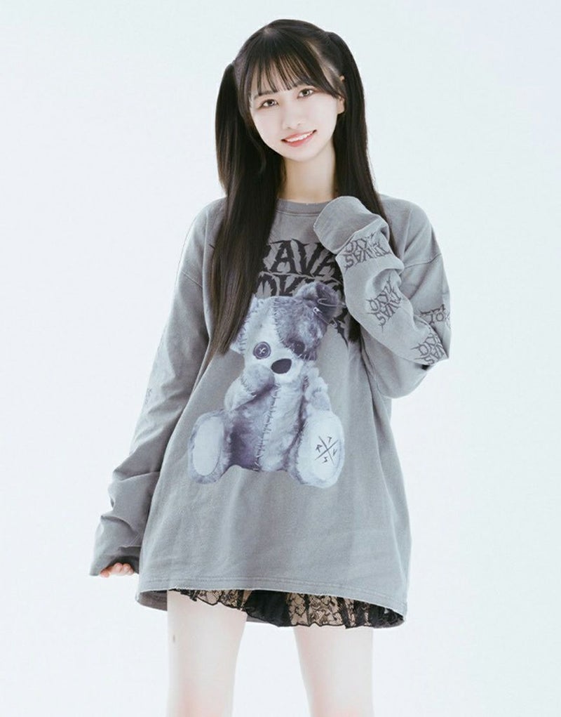 フロントには、糸で縫い留められたぬいぐるみ“クマ”の最新アートワークをインクジェットで鮮やかにプリント。