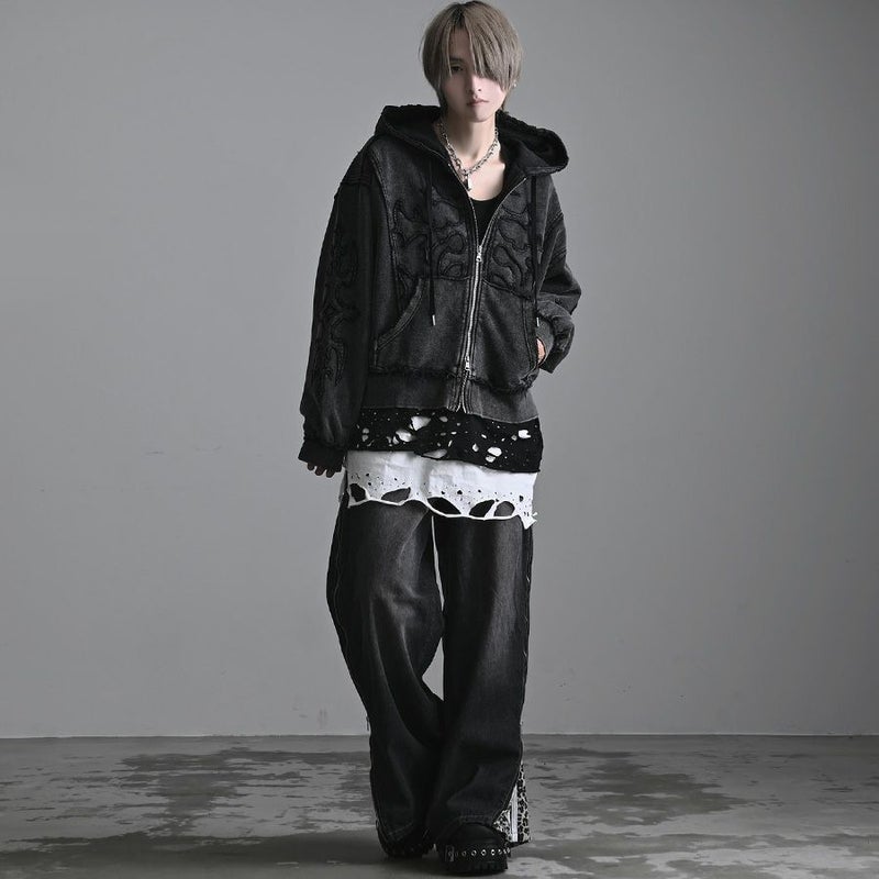 ACRO SELECT【アクロ セレクト】からUNDERGROUND トライバル刺繍ケミカルダブルジップアップパーカーが入荷しました。