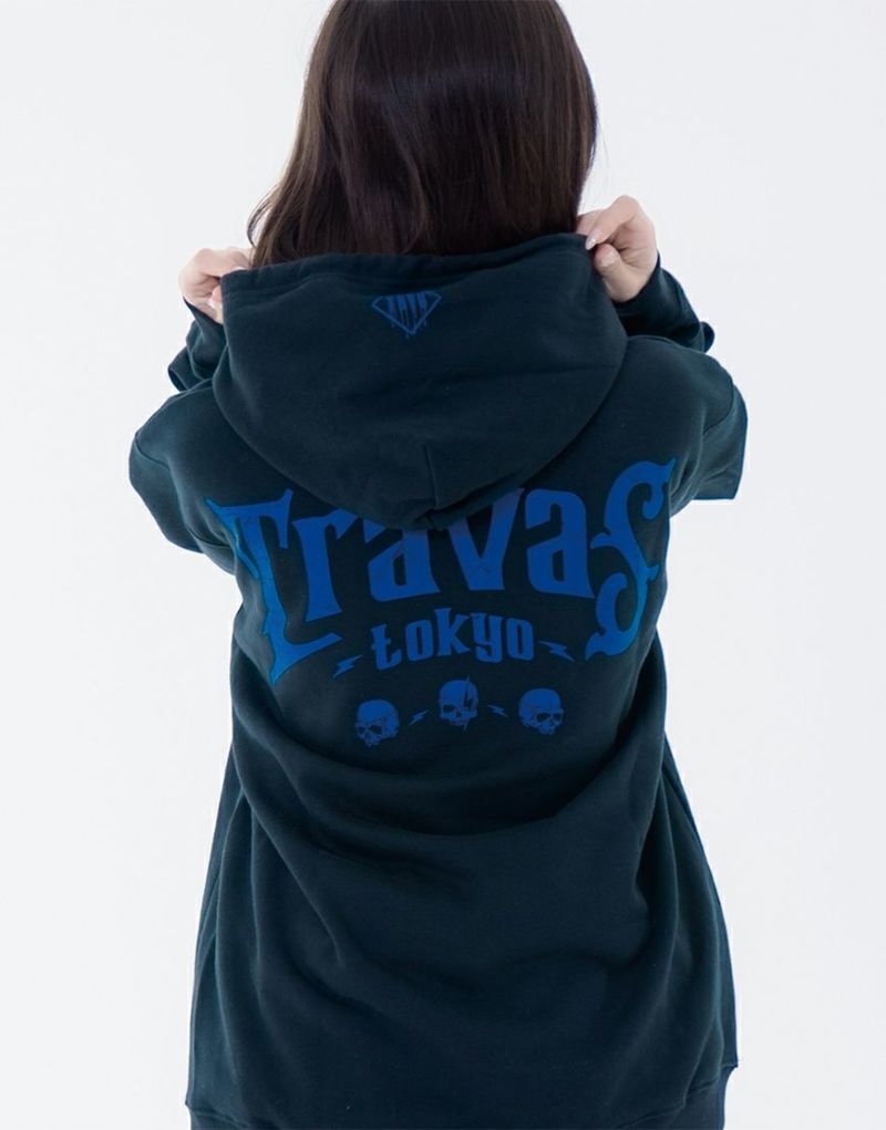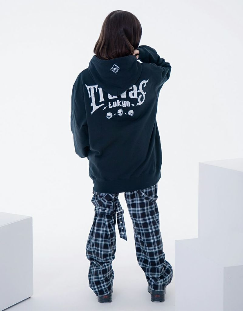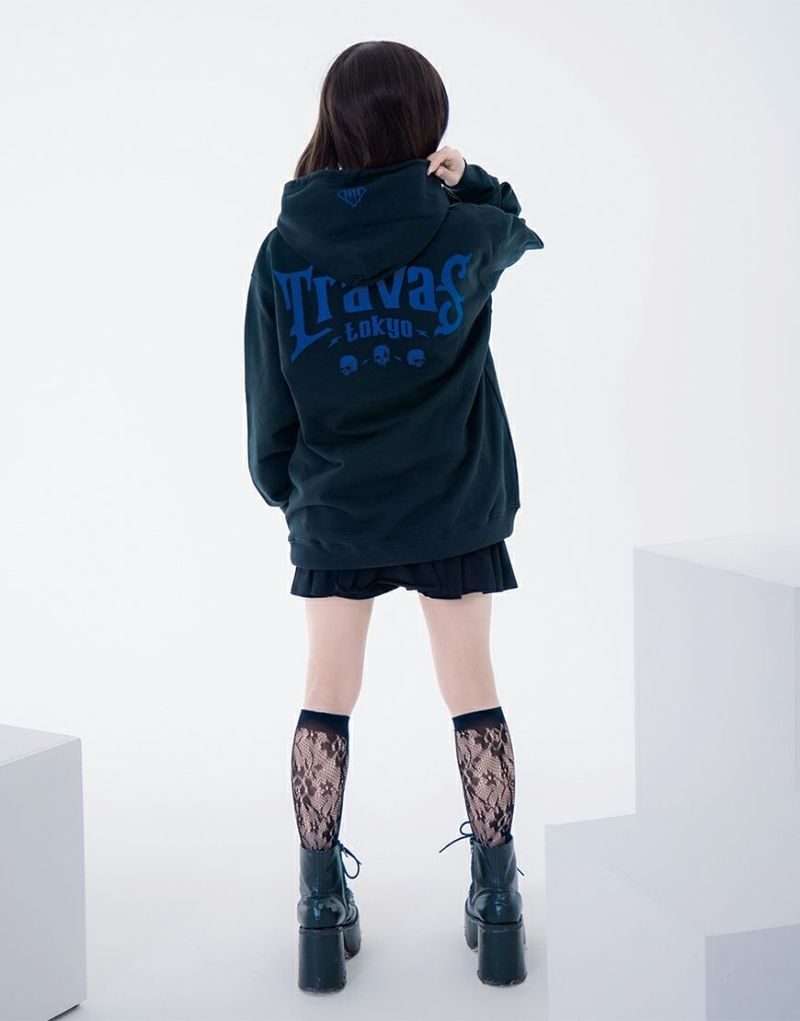 バックにはテイストの合ったブランドロゴと可愛い小ぶりスカル配置したブランドの定番プルパーカーです。