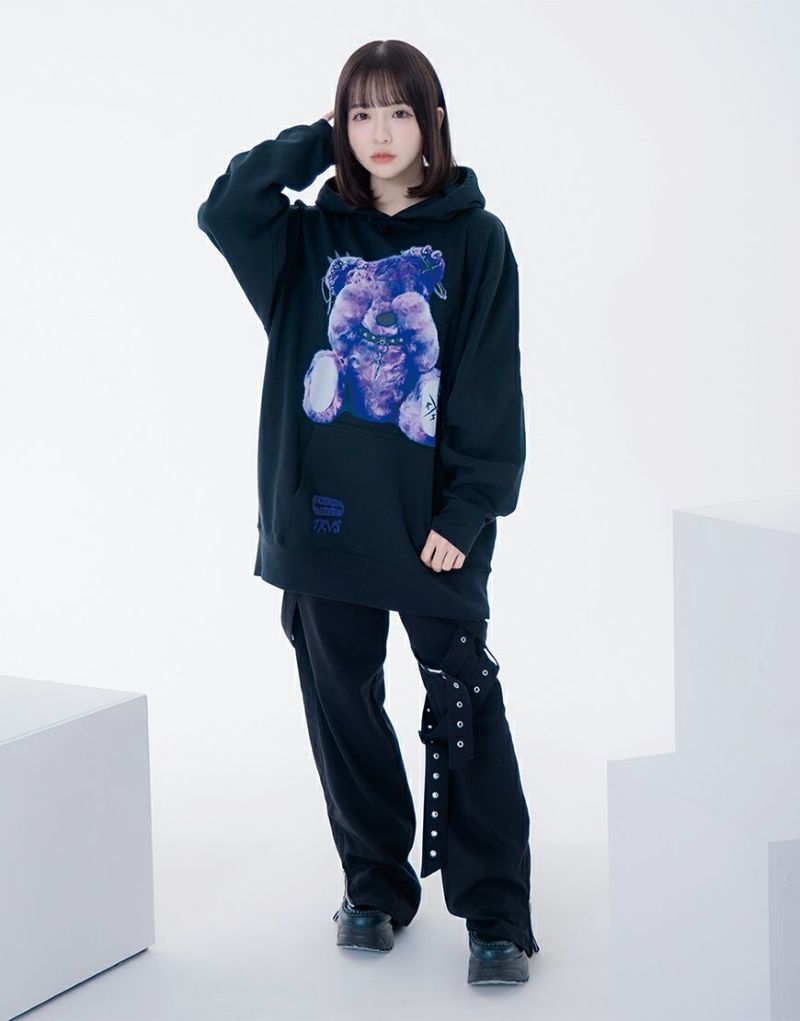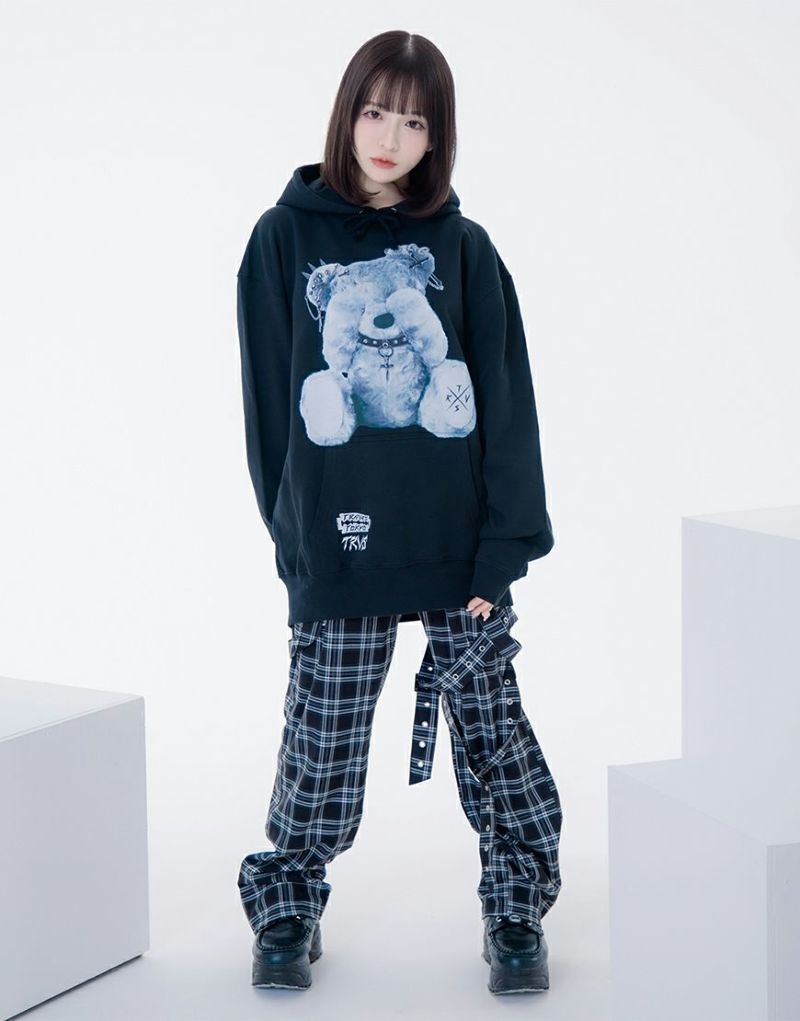 フロントをロックテイストにアクセで装飾させたクマを大きくプリント。