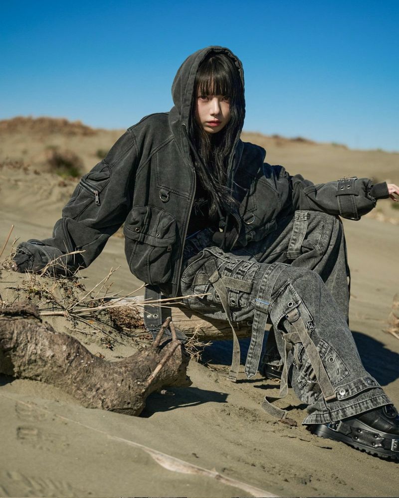 REFLEMからベルト付クロップカーゴレイヤードジップパーカーが登場。