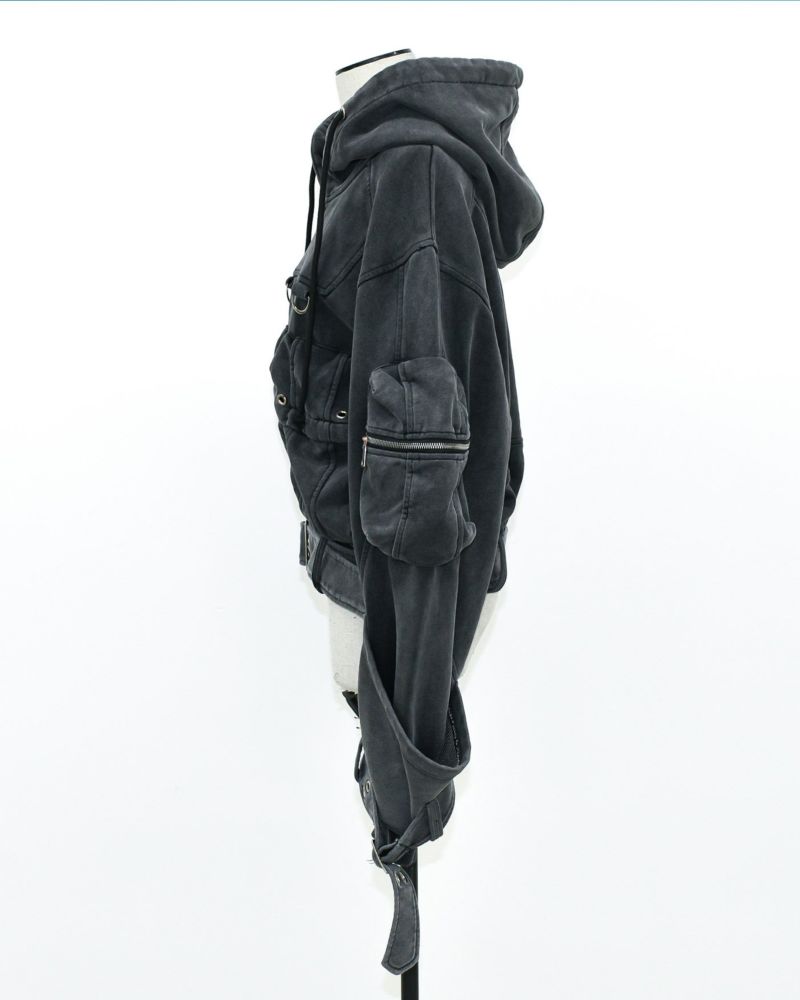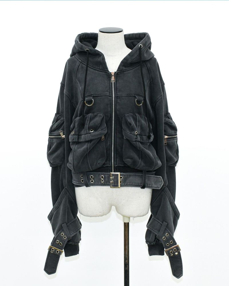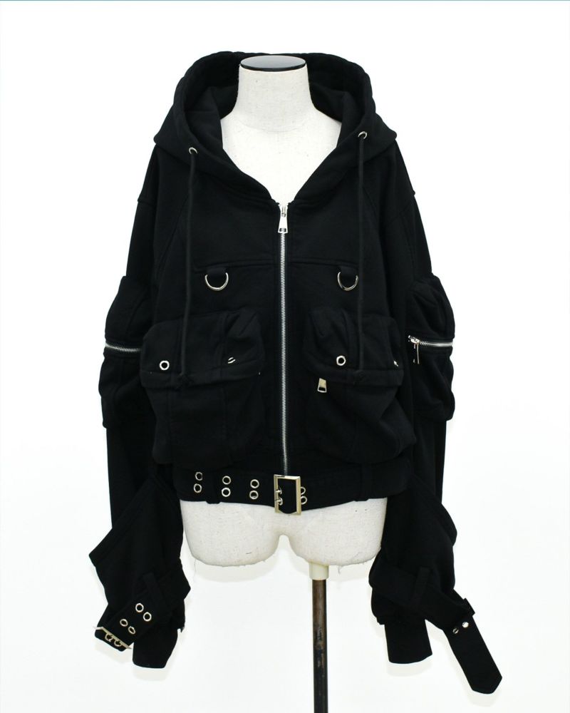 REFLEM【レフレム】ベルト付クロップカーゴレイヤードジップパーカー/全2色