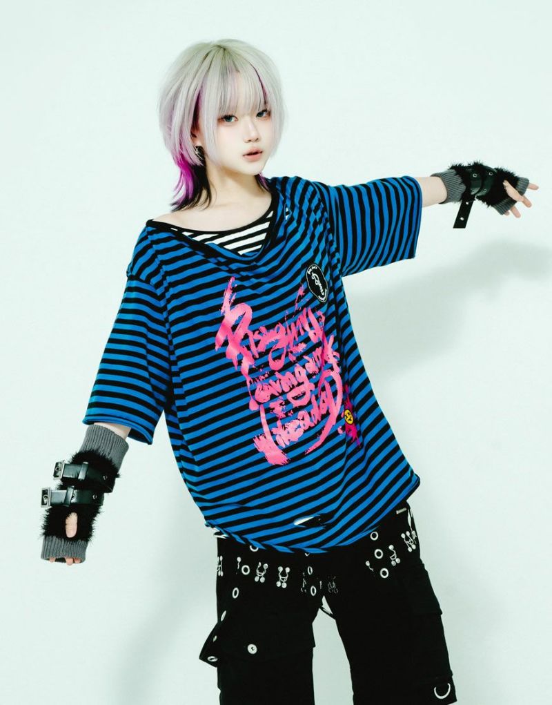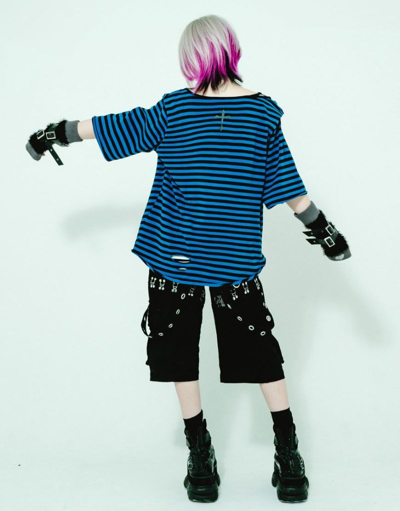袖口や裾のカットオフ仕様もポイントで、ストリートやグランジ、Y2Kスタイルとも相性抜群の一着です。