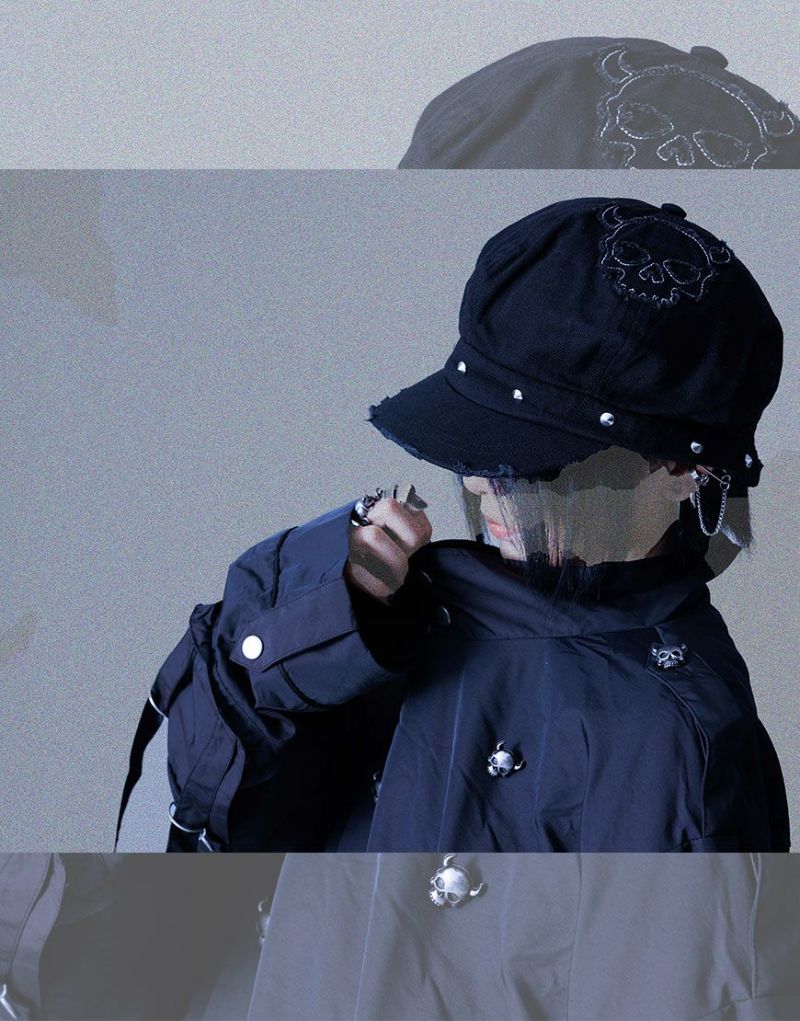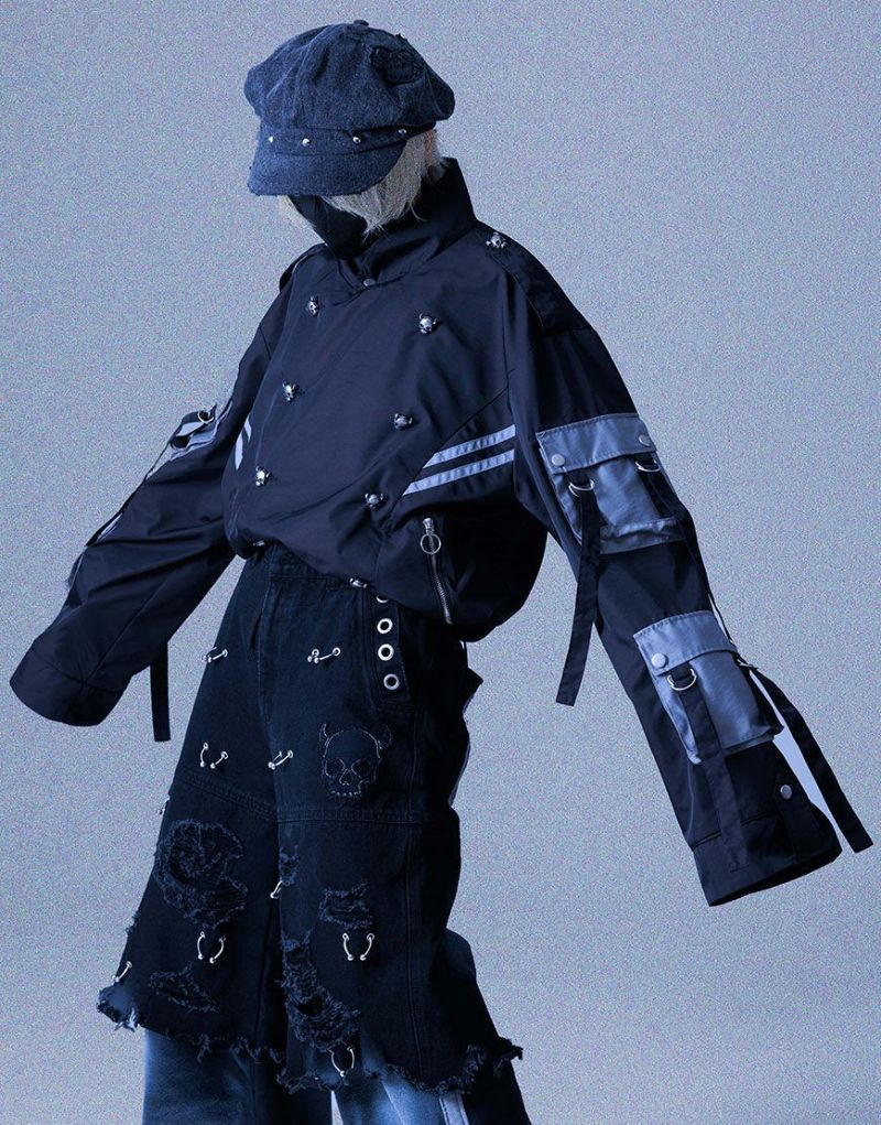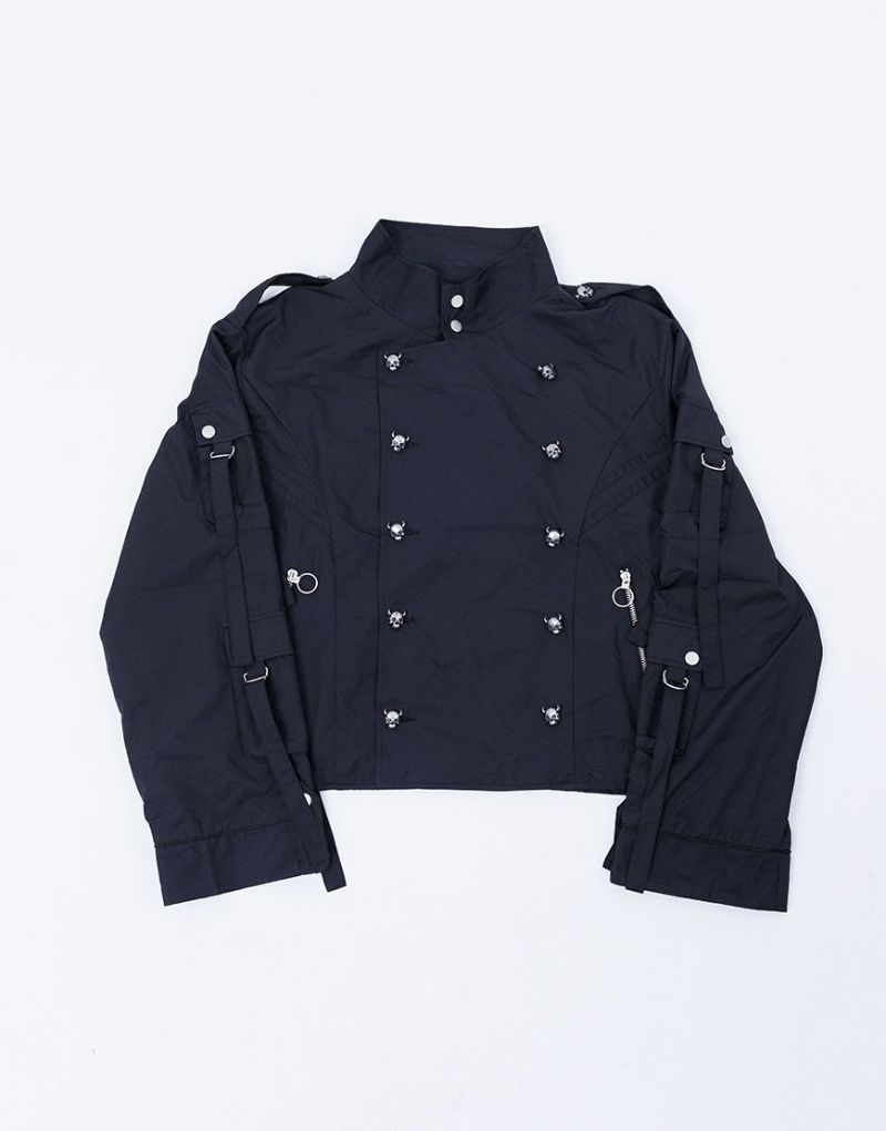 フロントと肩はブランドオリジナルスカルボタンを使用。後見頃ヨーク部分に本体どくろパッチアートワークを配置。拘りのディテールで表現したブランドらしいデザインとなっています。